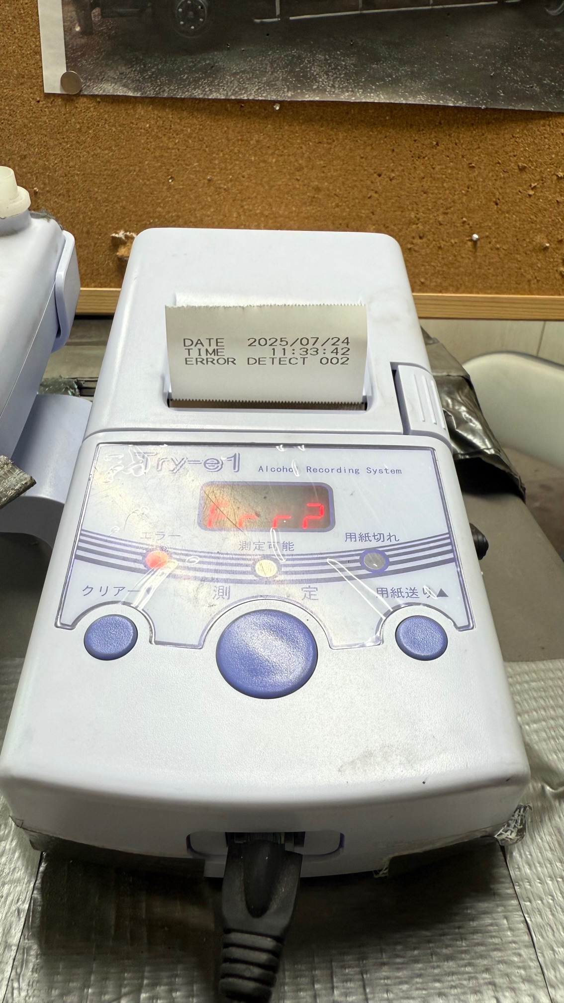 アルコールチェック検査後放置されていました。