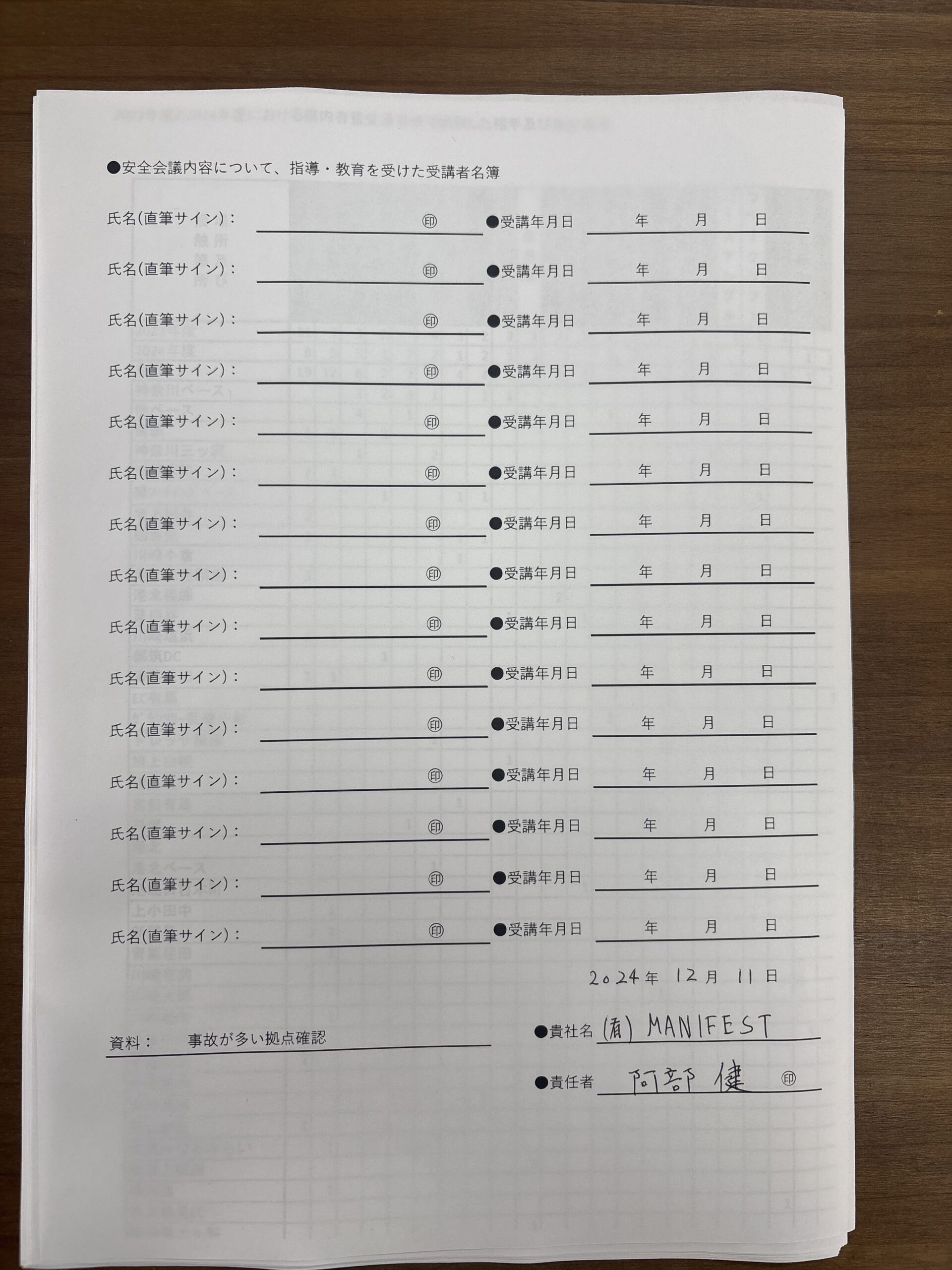 ヤマト安全教育 2024年12月11日 ヤマト全体お疲れ様ですヤマトの安全会議内容を共有します12月繁忙期により事故等が増えます事故無く無事に帰庫しましょう!サインを宜しくお願いいたしますこちらから「閲覧した」を登録してください。選択してください清和荒木宮前田ビノンド清水神山嶋村平石室矢荻野岩永荒井阿部(健)引田伊藤(諒)原甲斐碩市村山田(玲)城所阿部(長)山田(圭)庄司紀井伊藤(里)春原清和 荒木12/22宮 前田12/21ビノンド 清水12/21神山 嶋村 平石 室矢 荻野 岩永 荒井 阿部(健) 引田 伊藤(諒) 原 甲斐 碩 市村 山田(玲) 城所 阿部(長) 山田(圭) 庄司 紀井 伊藤(里) 春原 すべての投稿を見るトップページへ戻る