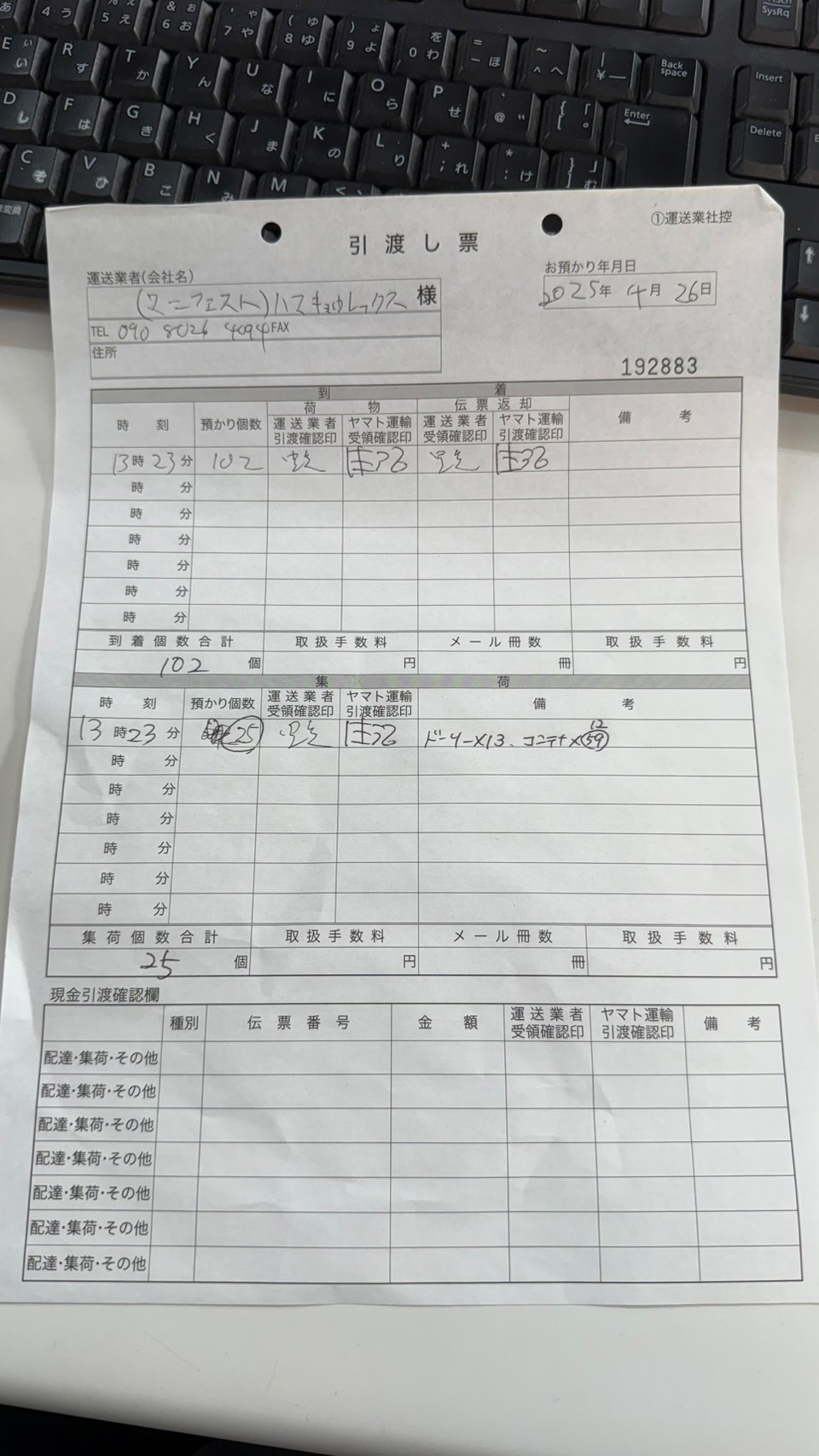 不明な書類 2025年5月1日 ALLこちらの書類は誰が持ち帰ったものでしょうか?業務報告の備考欄に記載もありませんFAXをするのでしょうか?それとも荷主に送るものでしょうか?それとも処分していいものでしょうか?こちらから「閲覧した」を登録してください。選択してください清和荒木宮前田ビノンド清水神山嶋村平石室矢荻野岩永荒井阿部(健)引田伊藤(諒)原甲斐碩市村山田(玲)城所阿部(長)山田(圭)庄司紀井伊藤(里)春原清和5/1荒木5/4宮5/4前田5/2ビノンド5/1清水5/1神山 嶋村5/1平石 室矢5/1荻野 岩永5/1荒井5/1阿部(健)5/1引田5/1伊藤(諒) 原5/1甲斐5/2碩5/2市村5/1山田(玲)5/1城所5/1阿部(長) 山田(圭) 庄司5/1紀井5/1伊藤(里) 春原 すべての投稿を見るトップページへ戻る
