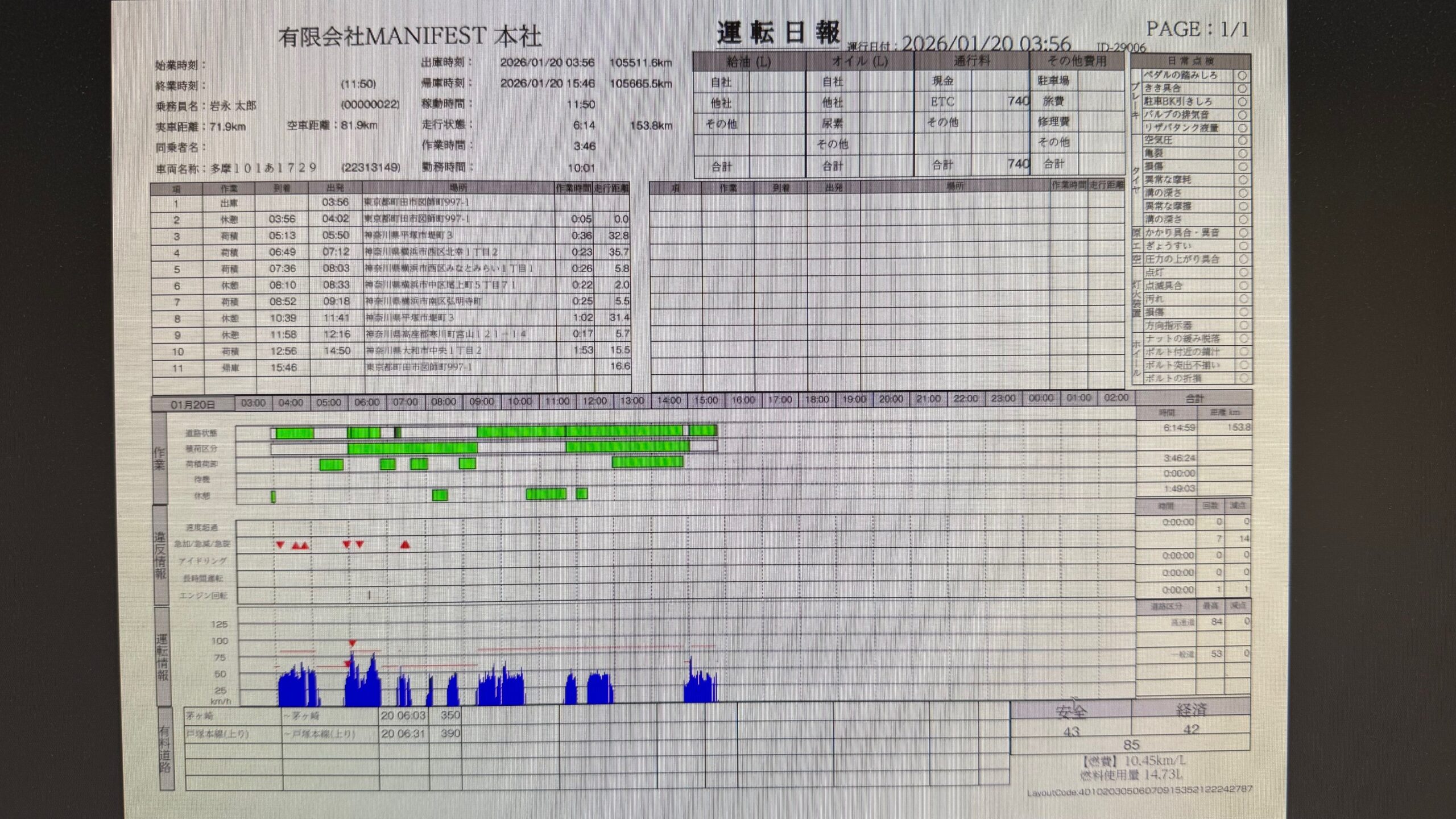 速度超過、急加速、急減速、長時間運転などに気を付け90点以上取れる安全運転で無事、帰って来れるようお願いいたしますm(_ _)m