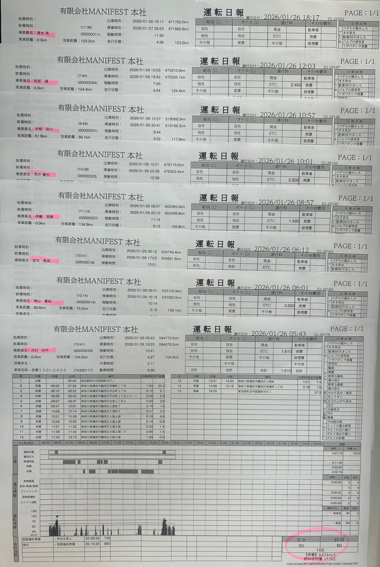 1/26分 100点満点者 8名 2026年1月27日 デジタコ(日報)お疲れ様です。8名の方が100点満点でした。いつも安全運転ありがとうございます。引き続きよろしくお願いいたします。こちらから「閲覧した」を登録してください。選択してください清和荒木宮前田ビノンド清水神山嶋村平石室矢荻野岩永荒井阿部(健)引田伊藤(諒)原甲斐碩市村山田(玲)城所阿部(長)山田(圭)庄司紀井伊藤(里)春原清和1/27荒木 宮 前田2/5ビノンド1/27清水1/27神山1/28嶋村 平石 室矢 荻野1/27岩永 荒井1/27阿部(健) 引田1/27伊藤(諒) 原 甲斐1/27碩 市村 山田(玲) 城所 阿部(長) 山田(圭) 庄司 紀井 伊藤(里)1/27春原 すべての投稿を見るトップページへ戻る