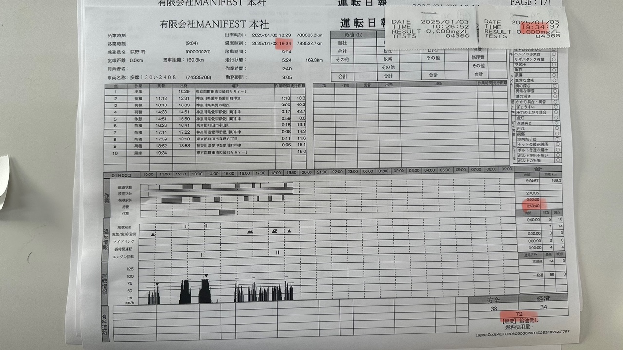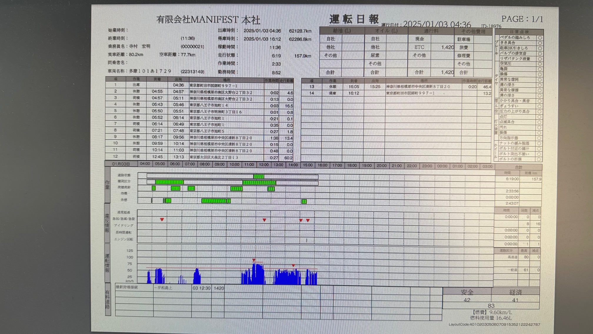 速度超過、急加速、急減速、長時間運転などに気を付け90点以上取れる安全運転で無事、帰って来れるようお願いいたしますm(_ _)m