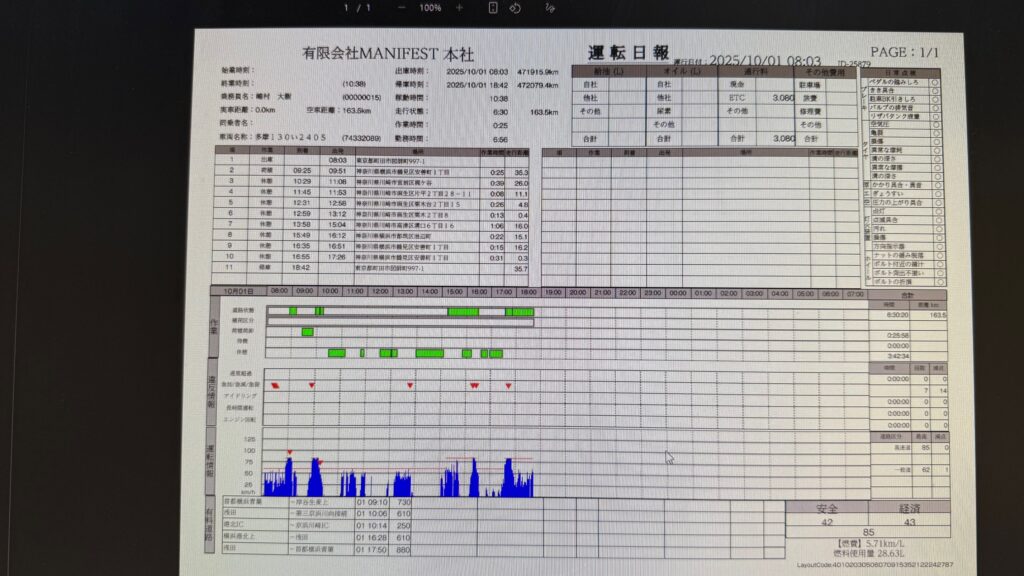 ※報告書には記入日とは別にデジタコの日付もお願いいたします。