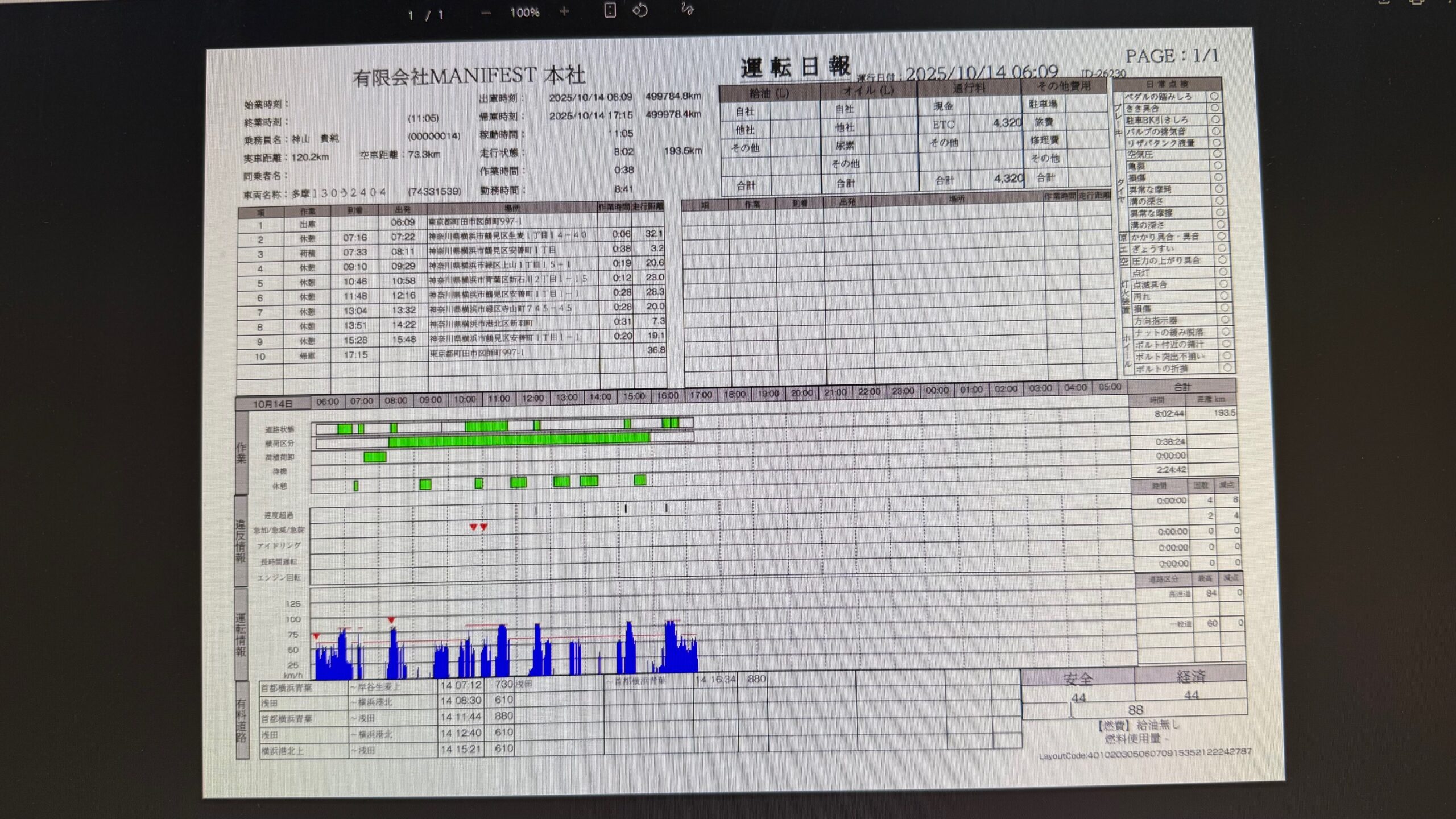 デジタコの日報の点数が90点以下でしたm(_ _)m