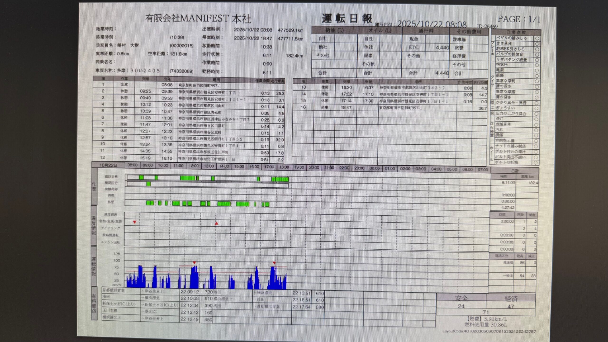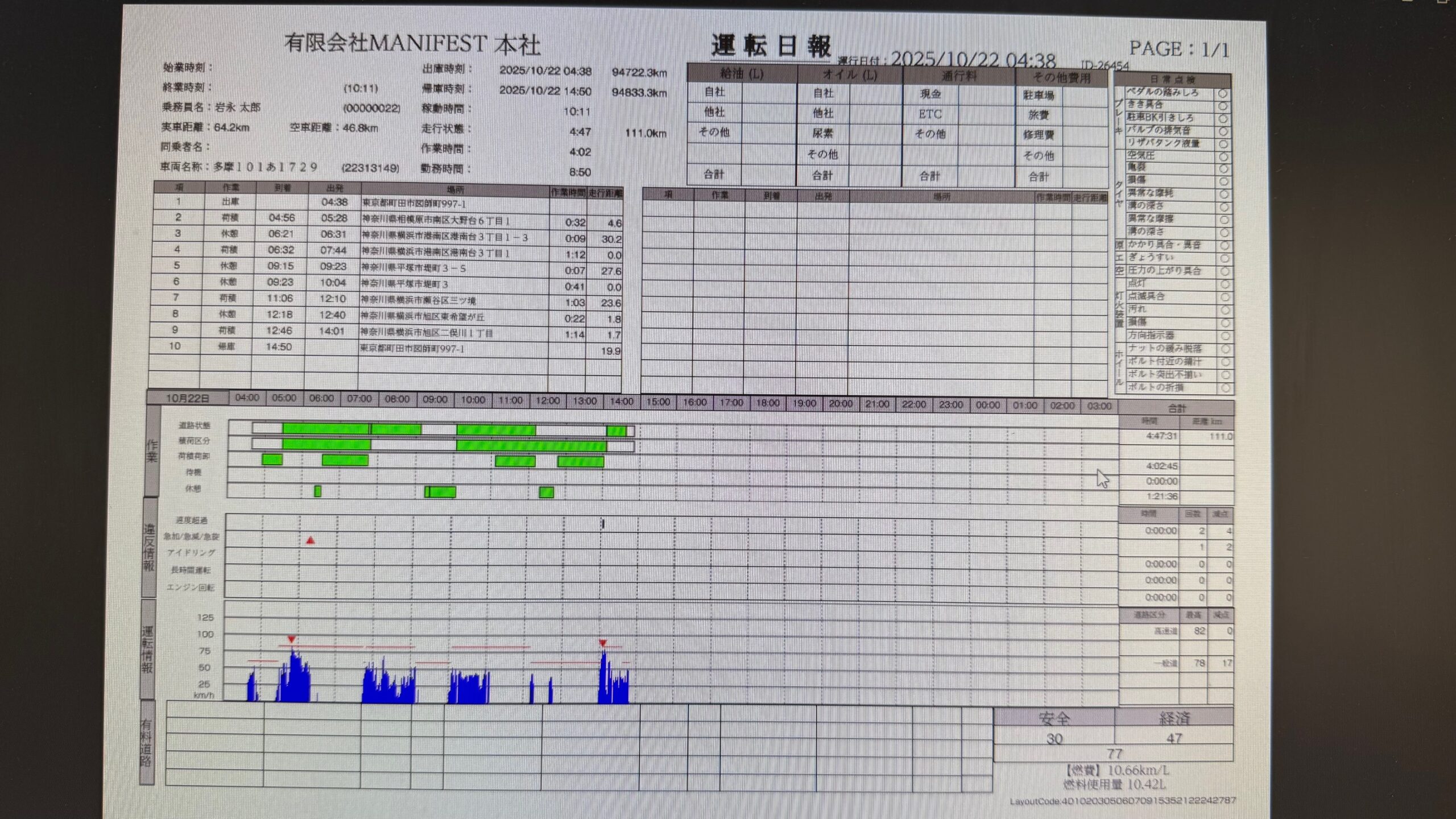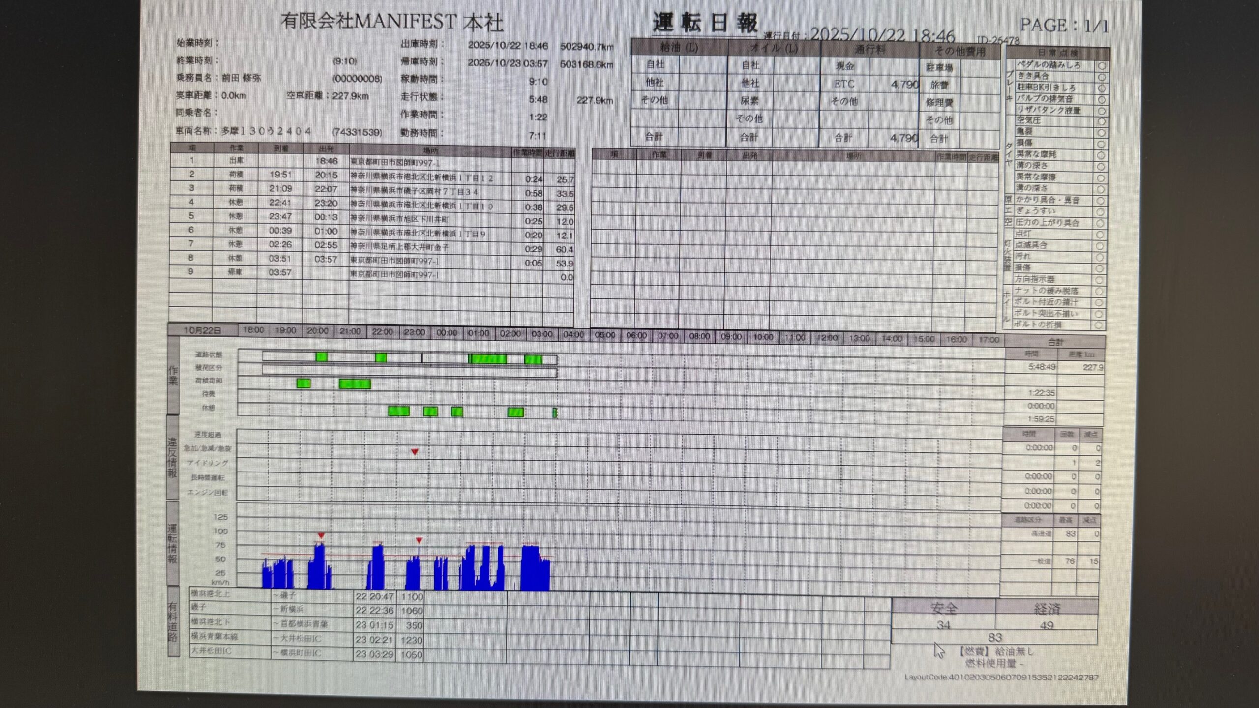 ※報告書には記入日とは別にデジタコの日付もお願いいたします。