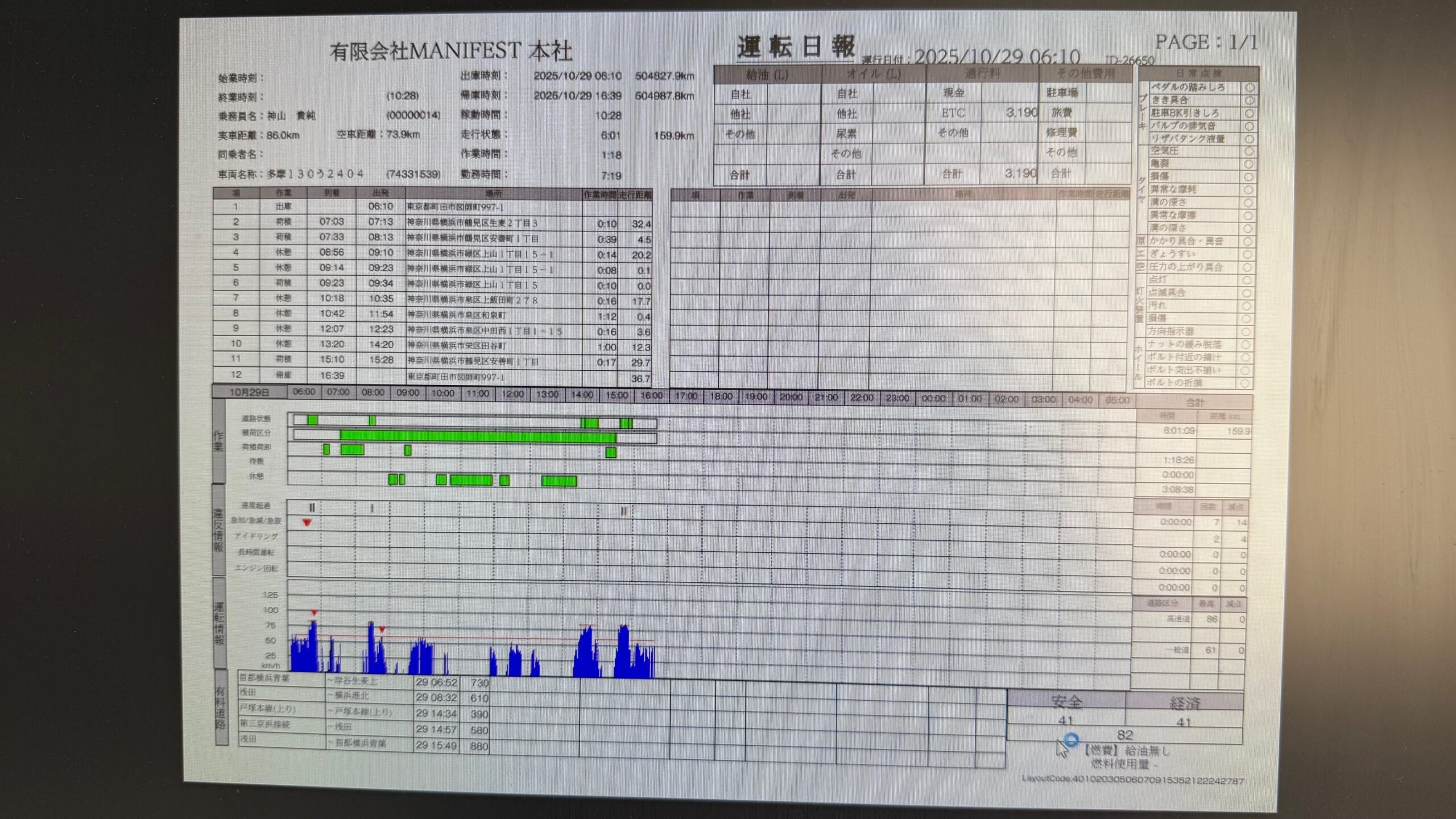 ※報告書には記入日とは別にデジタコの日付もお願いいたします。