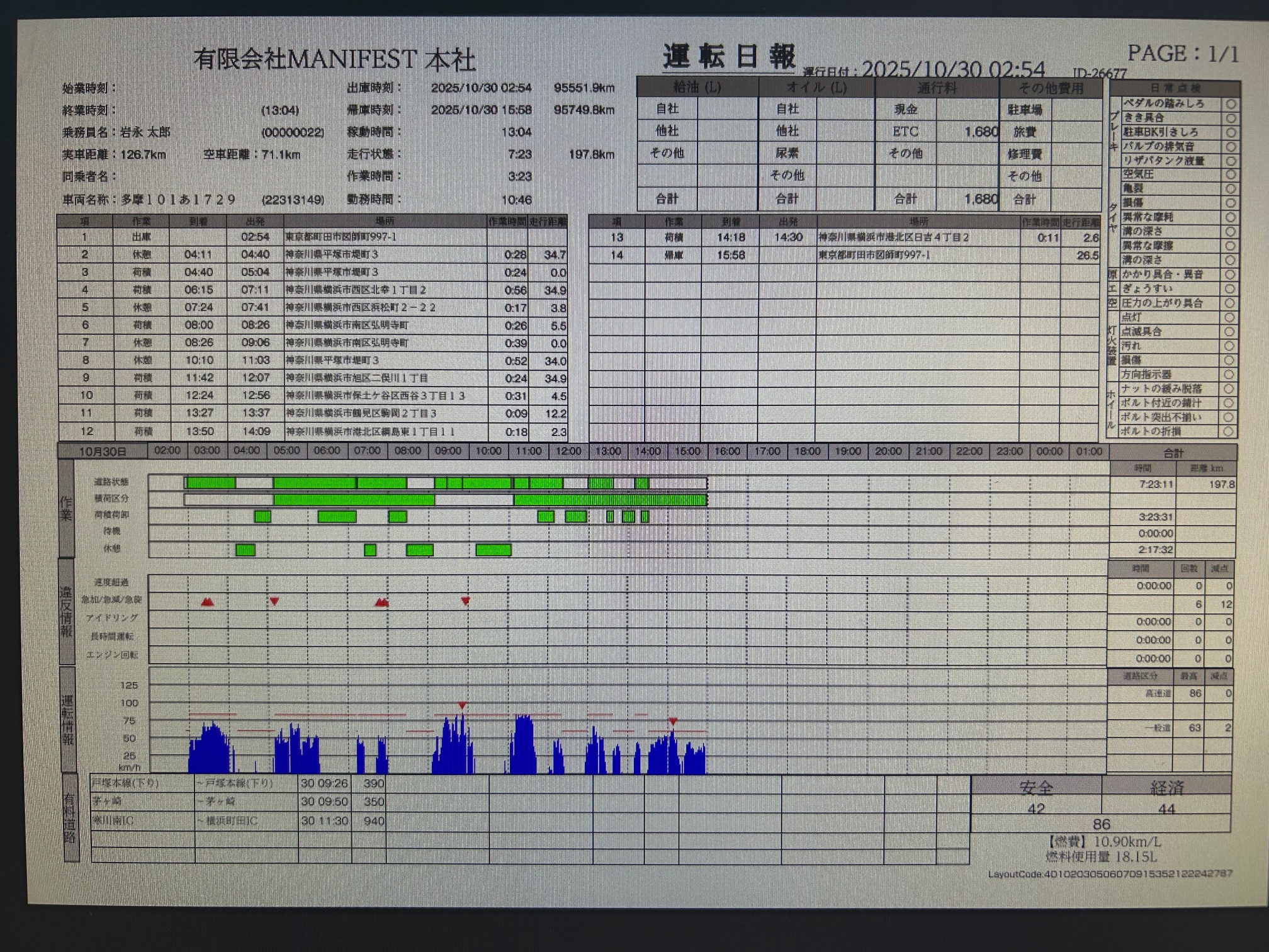 速度超過、急加速、急減速、長時間運転などに気を付け90点以上取れる安全運転で無事、帰って来れるようお願いいたします。