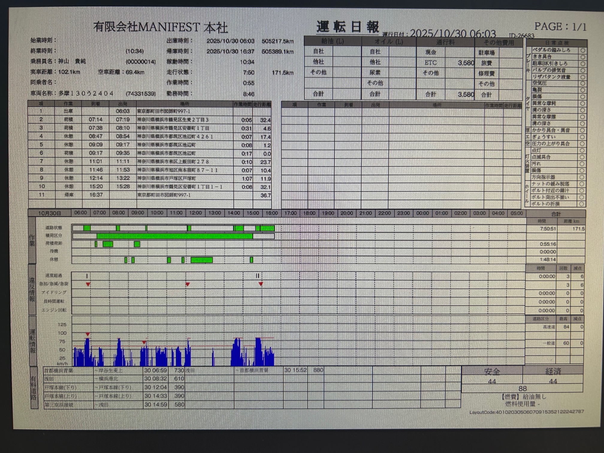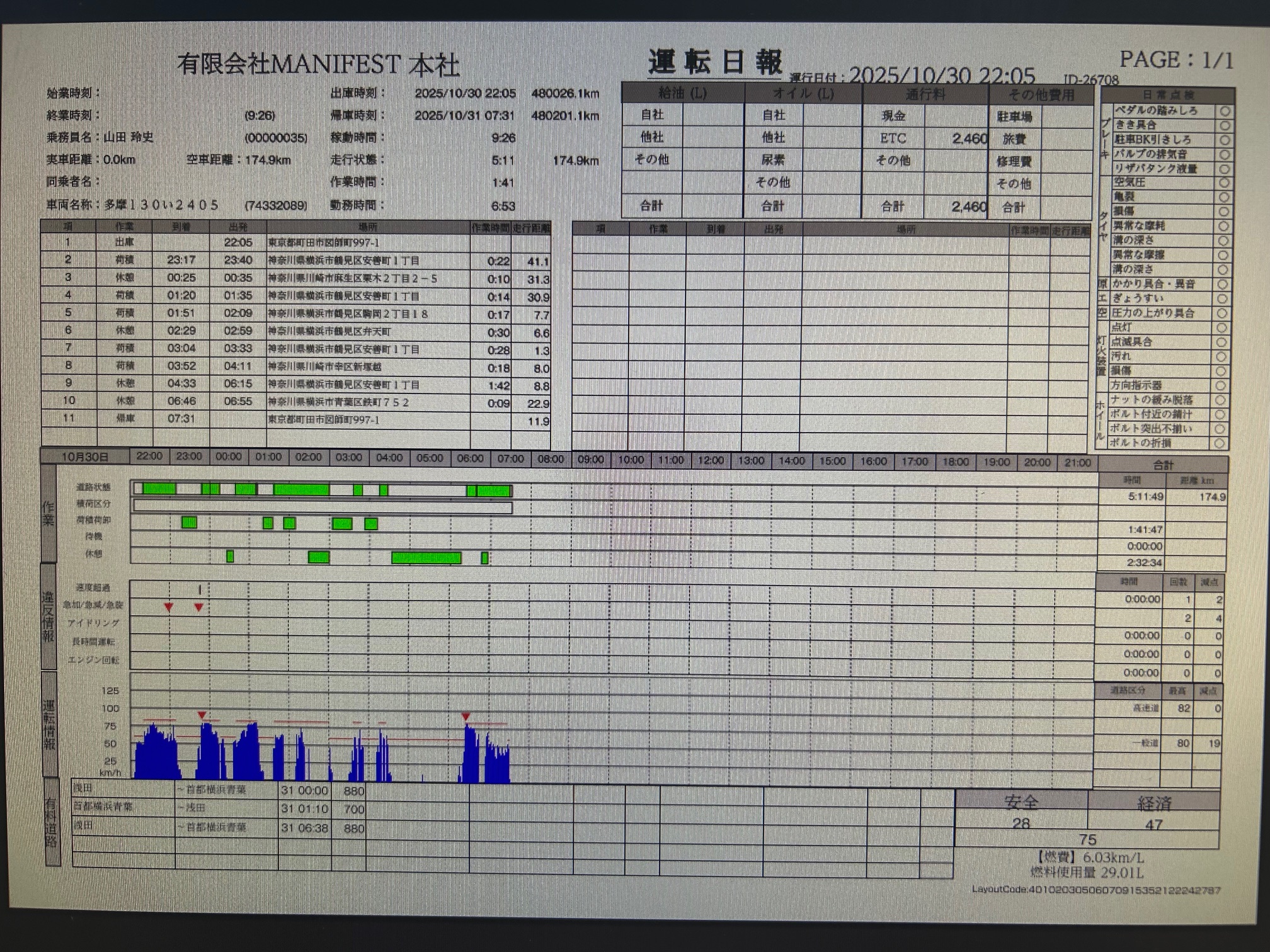 ※報告書に記入日とは別にデジタコの日付の記入もお願いいたします。