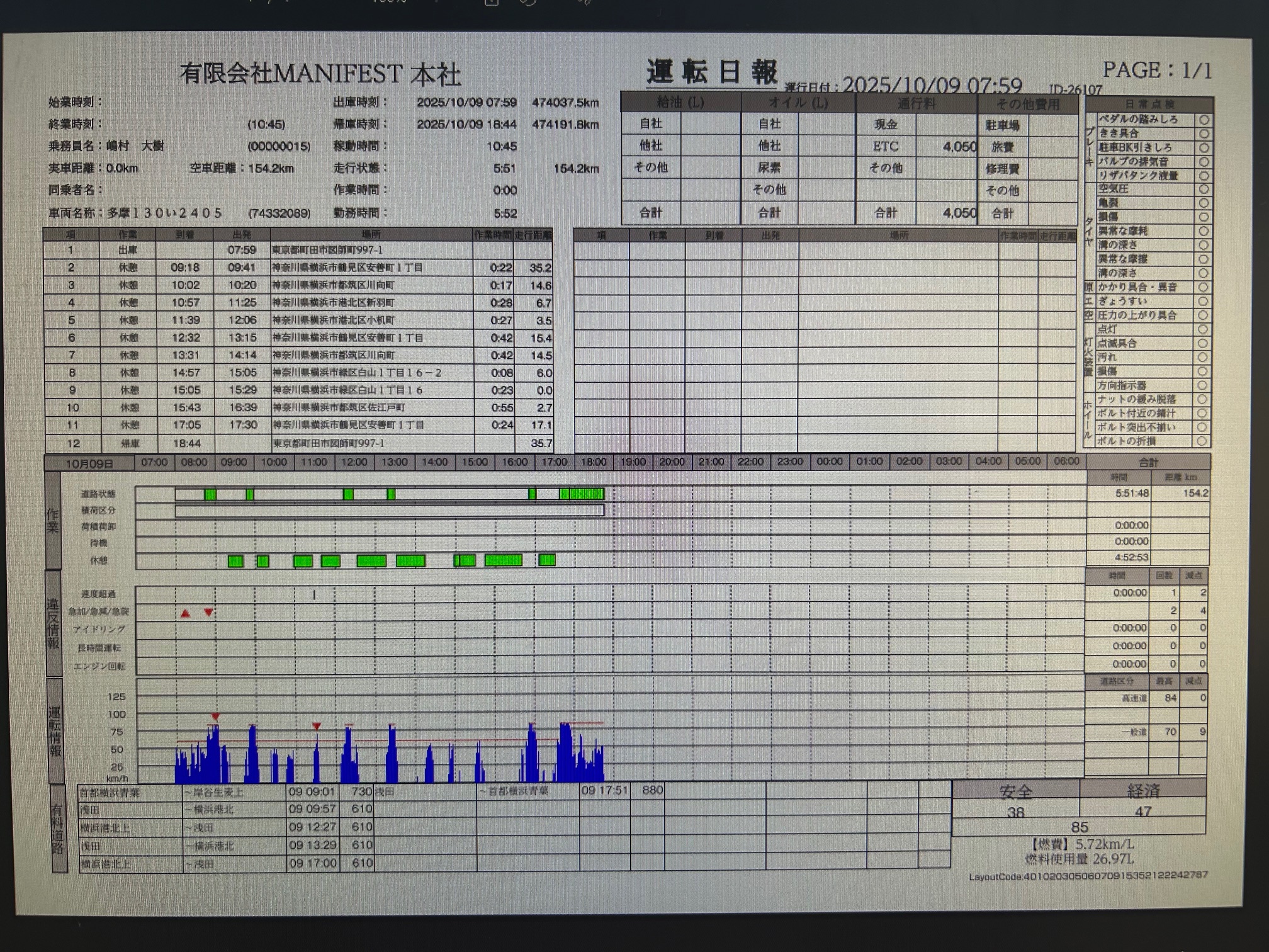 ※報告書に記入日とは別にデジタコの日付の記入もお願いいたします。