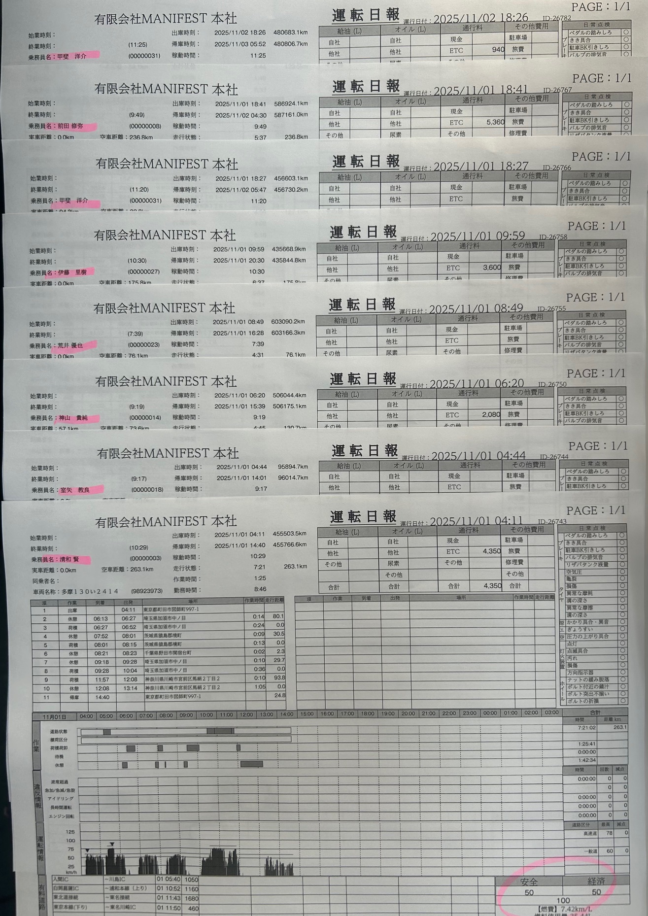 11/1.2分 100点満点者 8名 2025年11月3日 デジタコ(日報)お疲れ様です。8名の方々が100点満点でした。いつも安全運転ありがとうございます。引き続きよろしくお願いいたします。こちらから「閲覧した」を登録してください。選択してください清和荒木宮前田ビノンド清水神山嶋村平石室矢荻野岩永荒井阿部(健)引田伊藤(諒)原甲斐碩市村山田(玲)城所阿部(長)山田(圭)庄司紀井伊藤(里)春原清和11/4荒木 宮 前田11/4ビノンド11/3清水11/4神山 嶋村 平石 室矢 荻野11/3岩永 荒井11/3阿部(健)11/7引田11/4伊藤(諒) 原 甲斐 碩11/4市村 山田(玲)11/4城所 阿部(長) 山田(圭) 庄司 紀井 伊藤(里)11/3春原 すべての投稿を見るトップページへ戻る