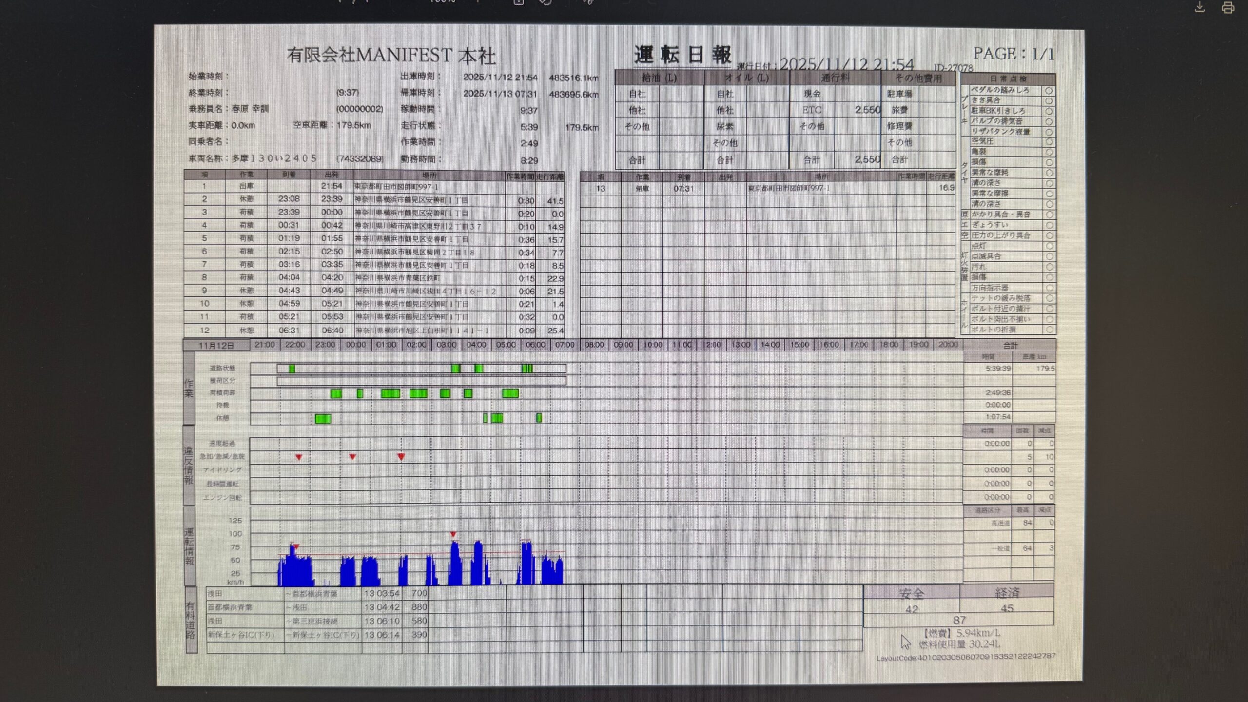 デジタコの日報の点数が90点以下でしたm(_ _)m