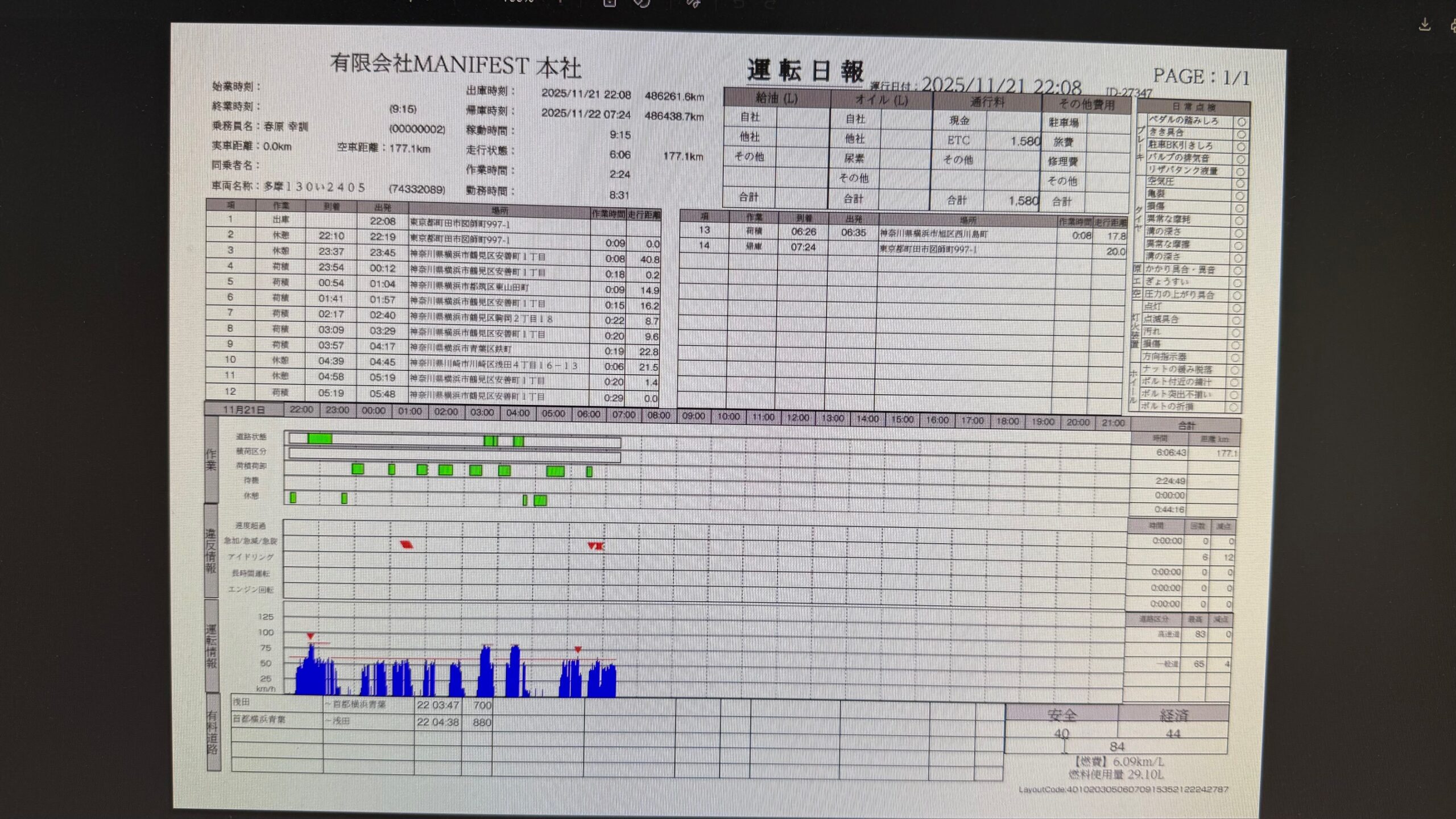 ※報告書には記入日とは別にデジタコの日付もお願いいたします。
