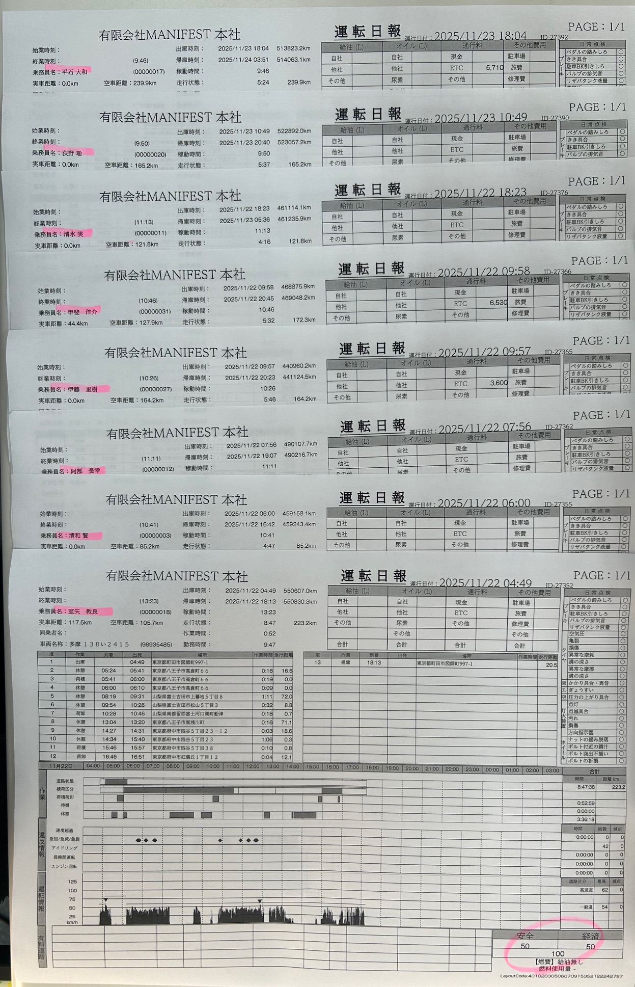 11/22.23分 100点満点者 8名 2025年11月24日 デジタコ(日報)お疲れ様です。8名の方が100点満点でした。いつも安全運転ありがとうございます。引き続きよろしくお願いいたします。 こちらから「閲覧した」を登録してください。選択してください清和荒木宮前田ビノンド清水神山嶋村平石室矢荻野岩永荒井阿部(健)引田伊藤(諒)原甲斐碩市村山田(玲)城所阿部(長)山田(圭)庄司紀井伊藤(里)春原清和 荒木 宮 前田11/25ビノンド 清水11/24神山 嶋村 平石 室矢 荻野11/24岩永 荒井11/24阿部(健) 引田11/24伊藤(諒) 原 甲斐11/24碩11/25市村 山田(玲)11/24城所 阿部(長) 山田(圭) 庄司 紀井 伊藤(里)11/24春原 すべての投稿を見るトップページへ戻る