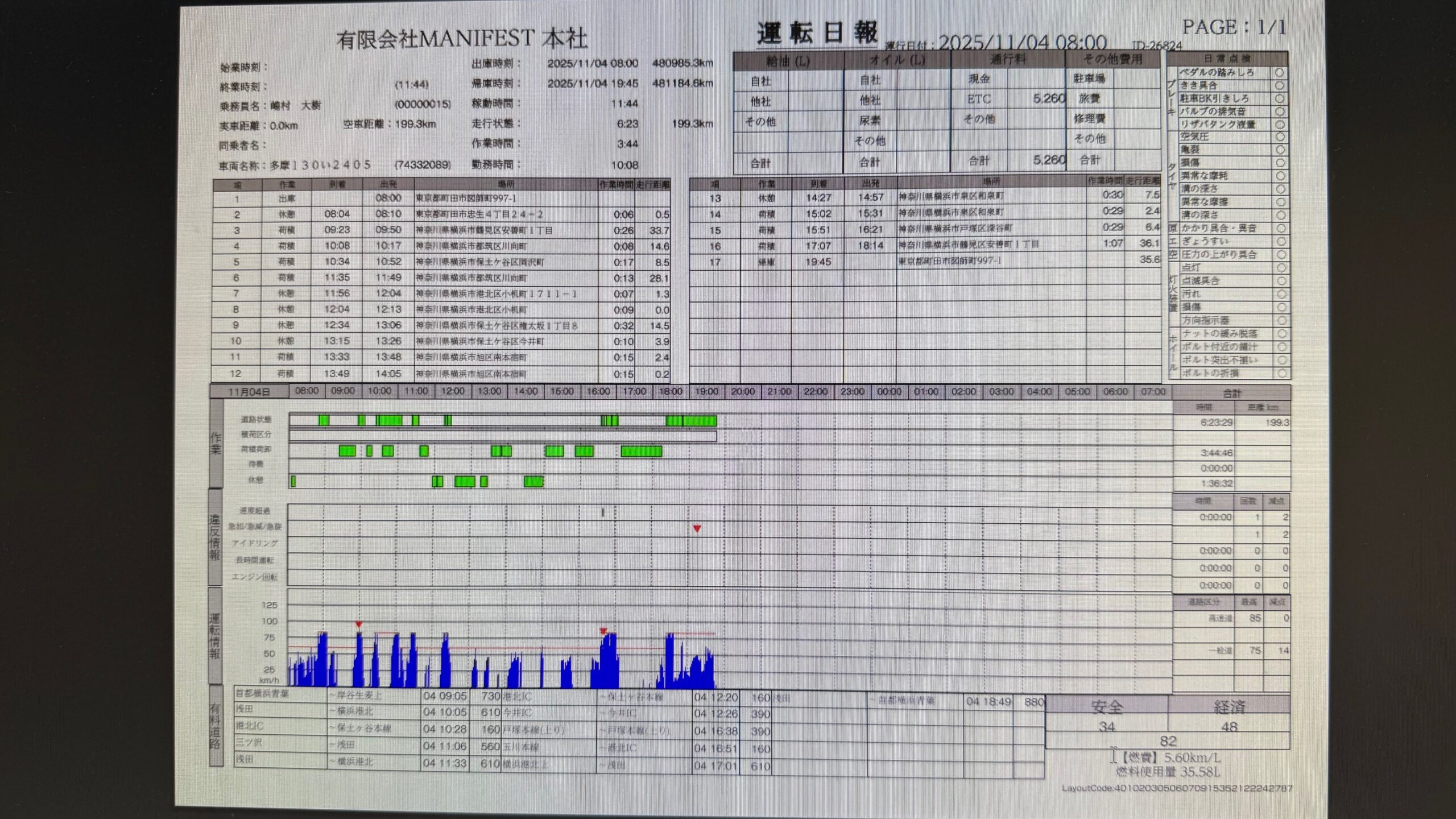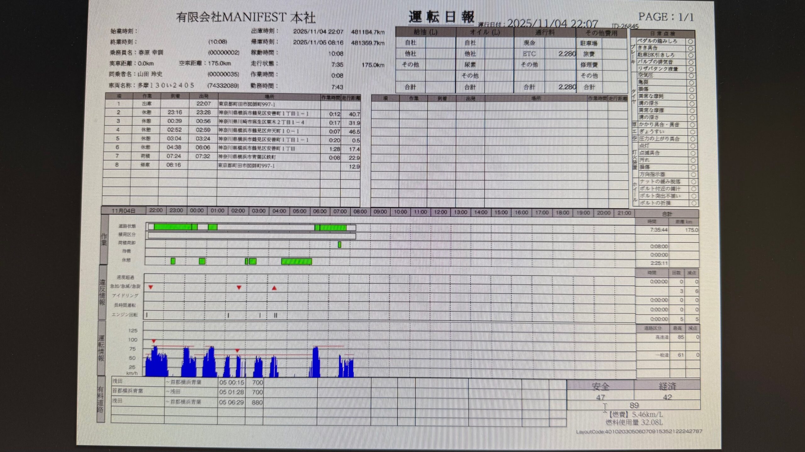 デジタコの日報の点数が90点以下でしたm(_ _)m