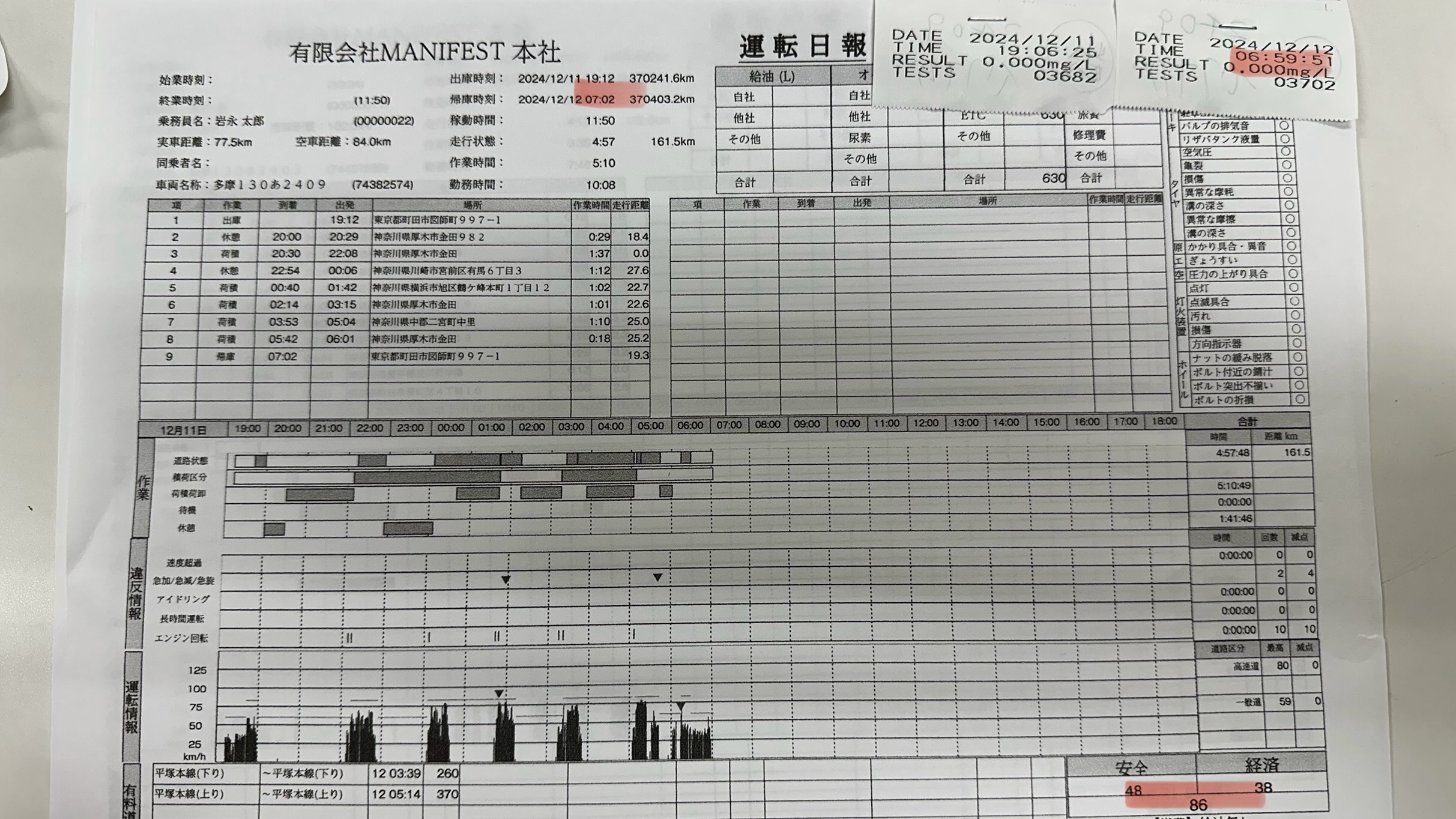 また、帰庫時間が、アルコールチェックより後になってましたので