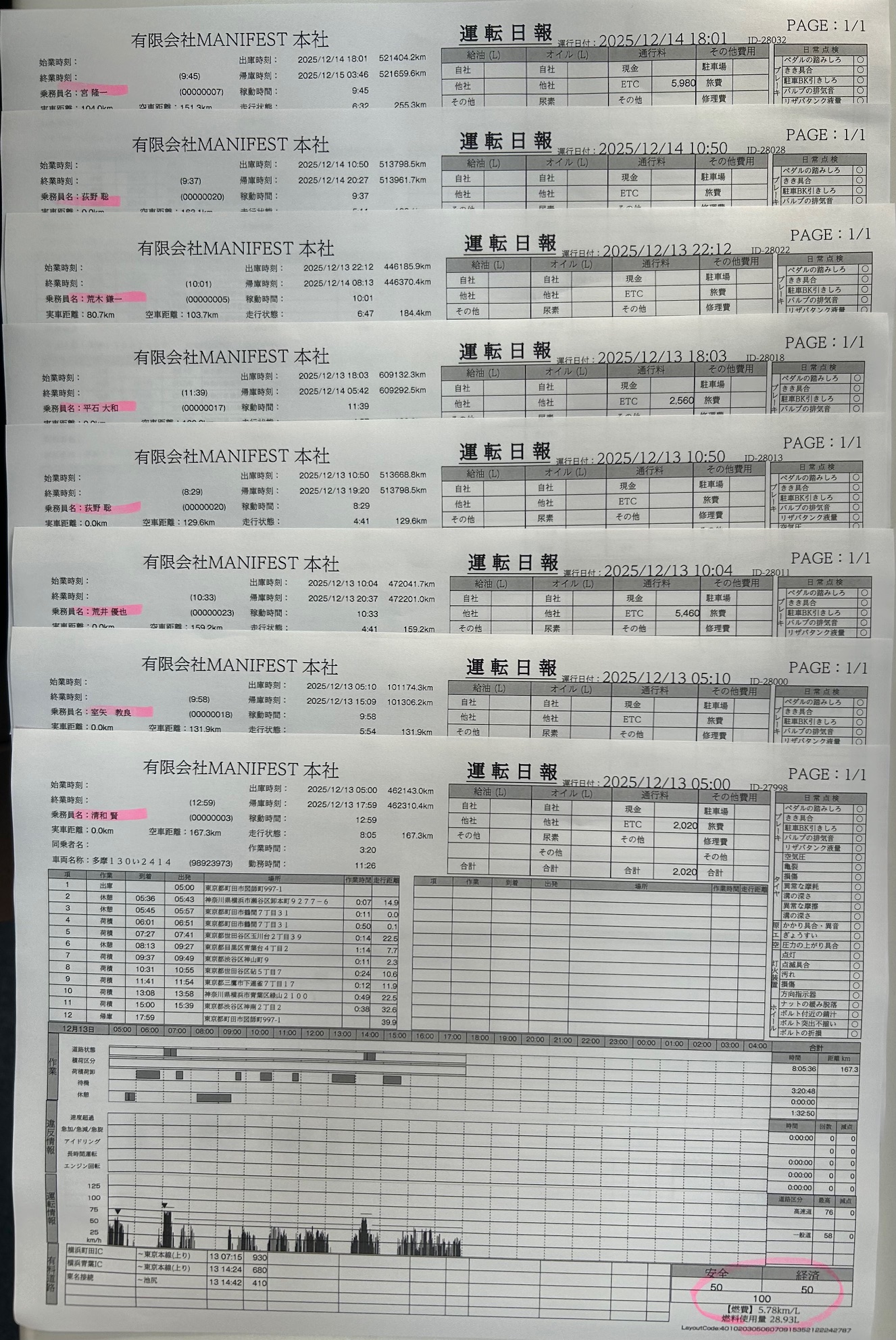 12/13.14分 100点満点者 8名 2025年12月15日 デジタコ(日報)お疲れ様です。8名の方が100点満点でした。いつも安全運転ありがとうございます。引き続きよろしくお願いいたします。こちらから「閲覧した」を登録してください。選択してください清和荒木宮前田ビノンド清水神山嶋村平石室矢荻野岩永荒井阿部(健)引田伊藤(諒)原甲斐碩市村山田(玲)城所阿部(長)山田(圭)庄司紀井伊藤(里)春原清和12/15荒木 宮12/17前田12/18ビノンド12/15清水12/15神山 嶋村 平石 室矢 荻野12/15岩永 荒井12/15阿部(健) 引田12/15伊藤(諒)12/15原12/15甲斐12/15碩 市村 山田(玲)12/16城所 阿部(長) 山田(圭) 庄司 紀井 伊藤(里)12/15春原 すべての投稿を見るトップページへ戻る