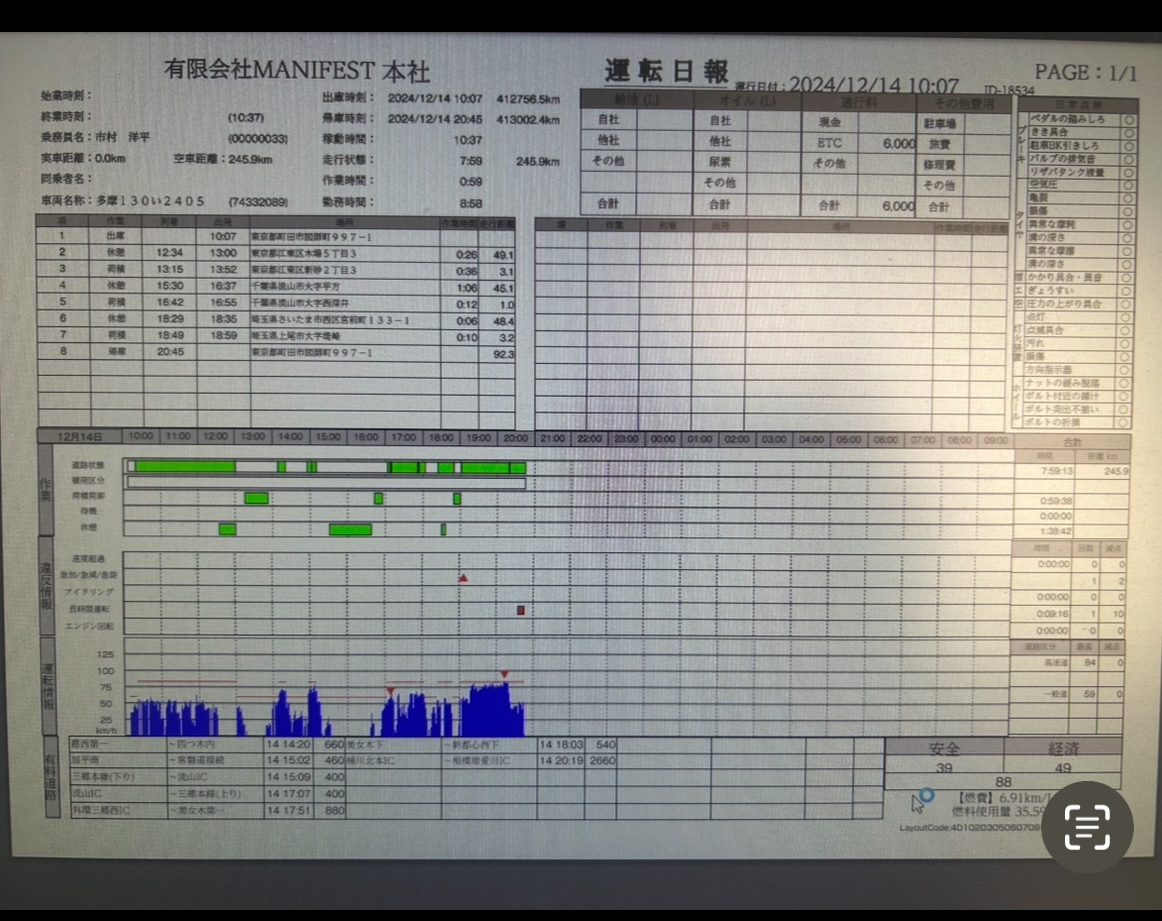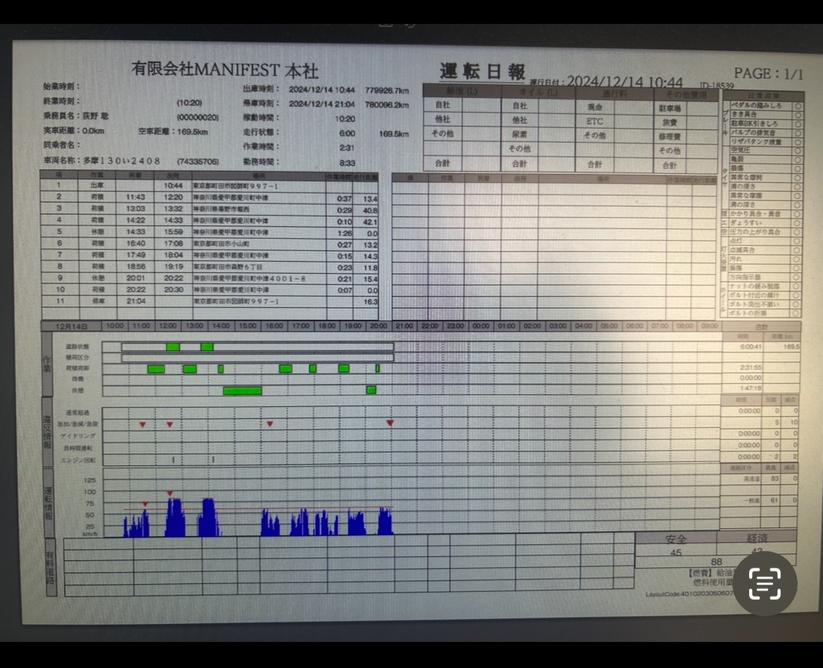 速度超過、急加速、急減速、長時間運転などに気を付け90点以上取れる安全運転で無事、帰って来れるようお願いいたしますm(_ _)m