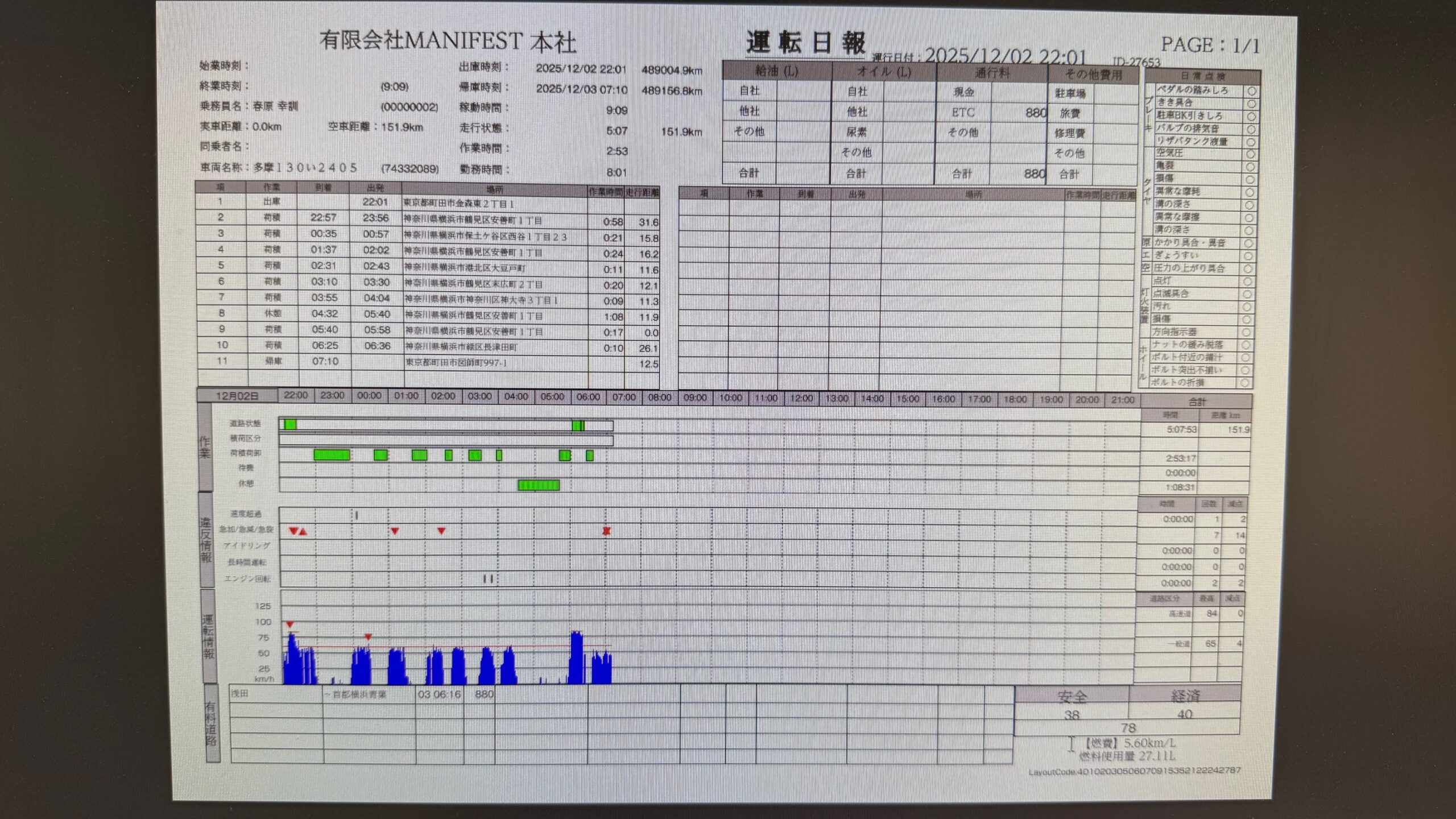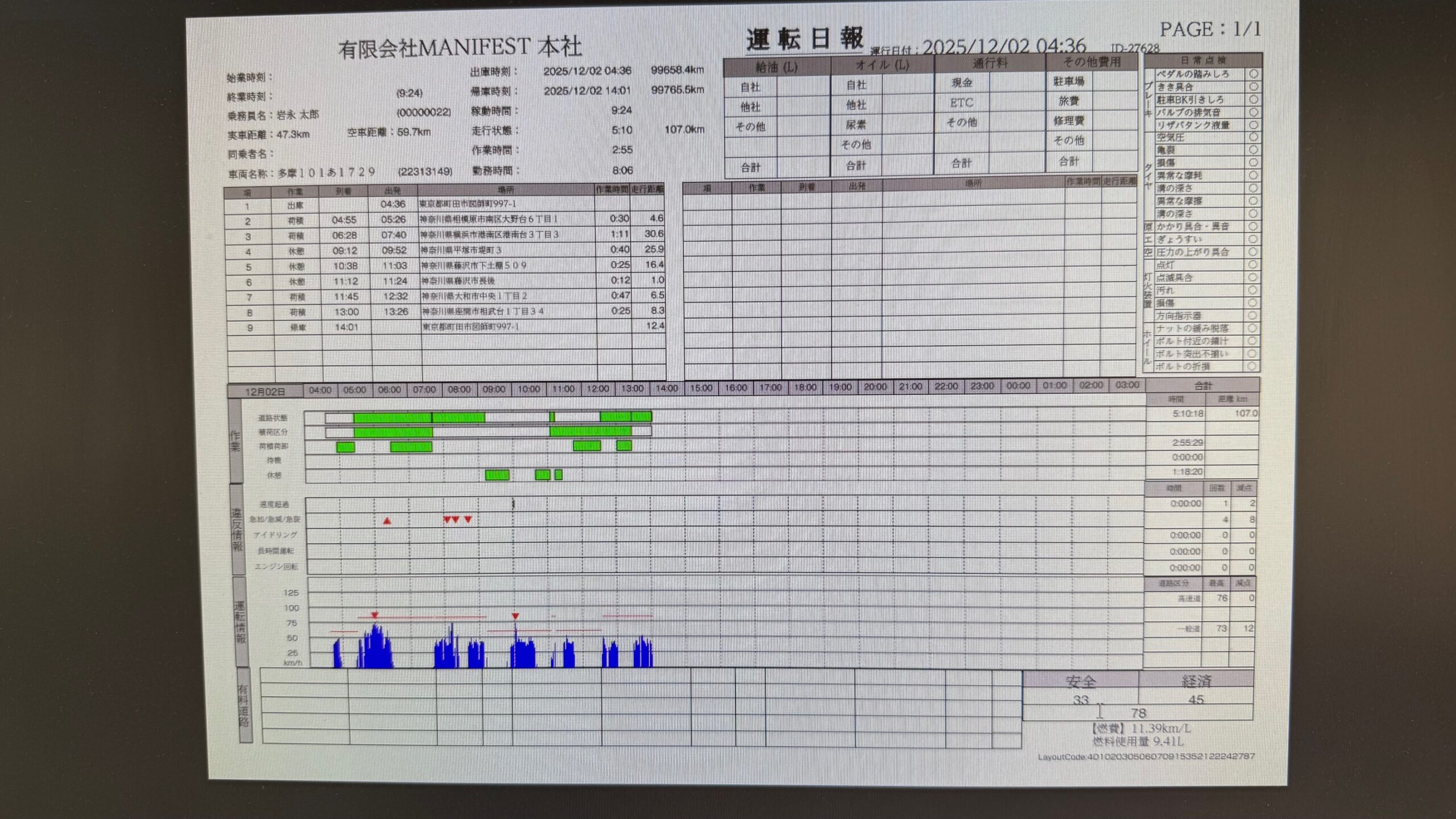 ※報告書には記入日とは別にデジタコの日付もお願いいたします。