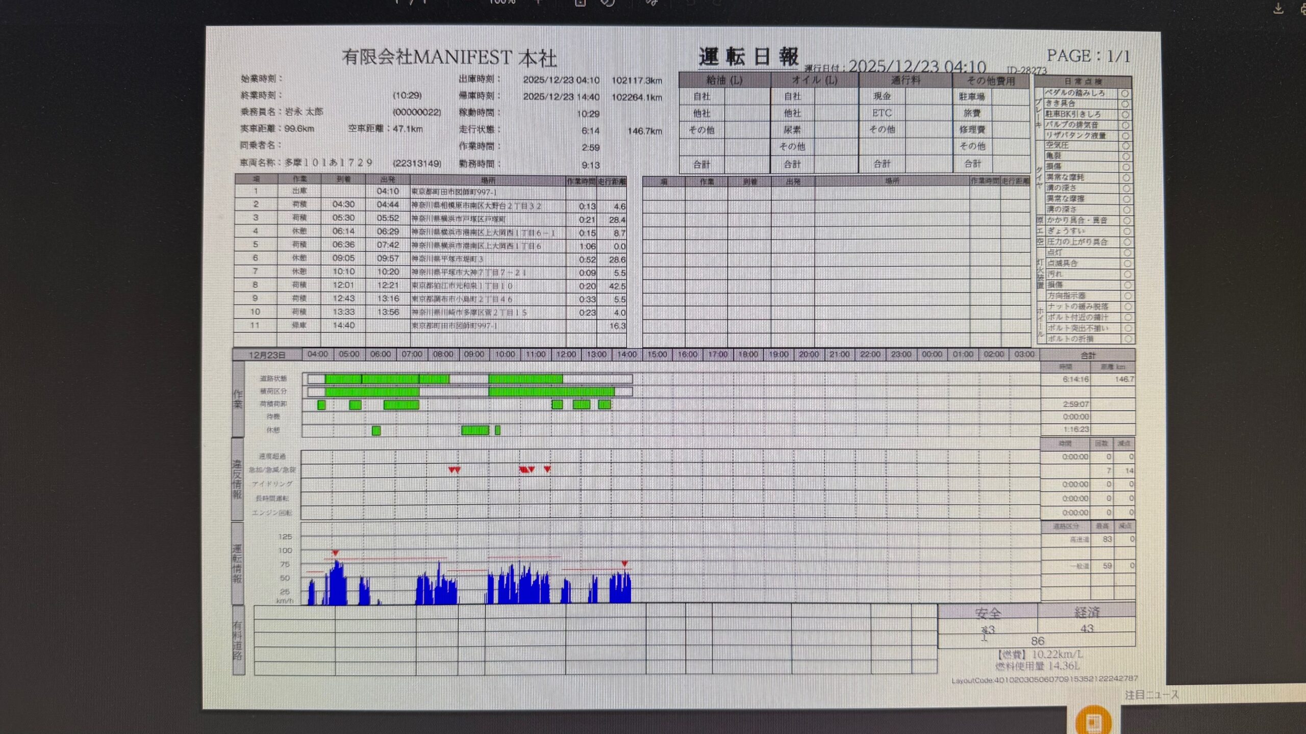 デジタコの日報の点数が90点以下でしたm(_ _)m