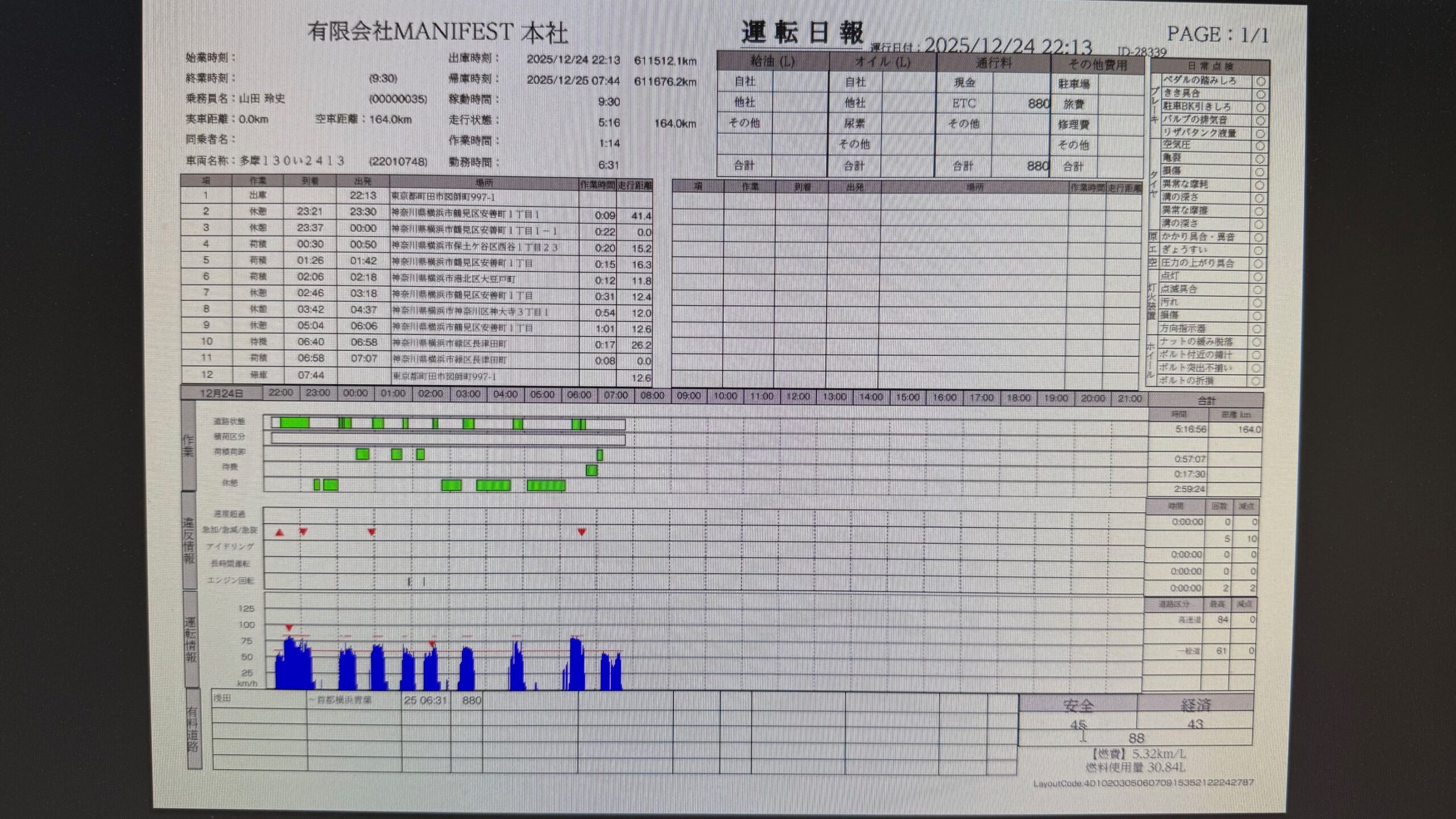 デジタコの日報の点数が90点以下でしたm(_ _)m