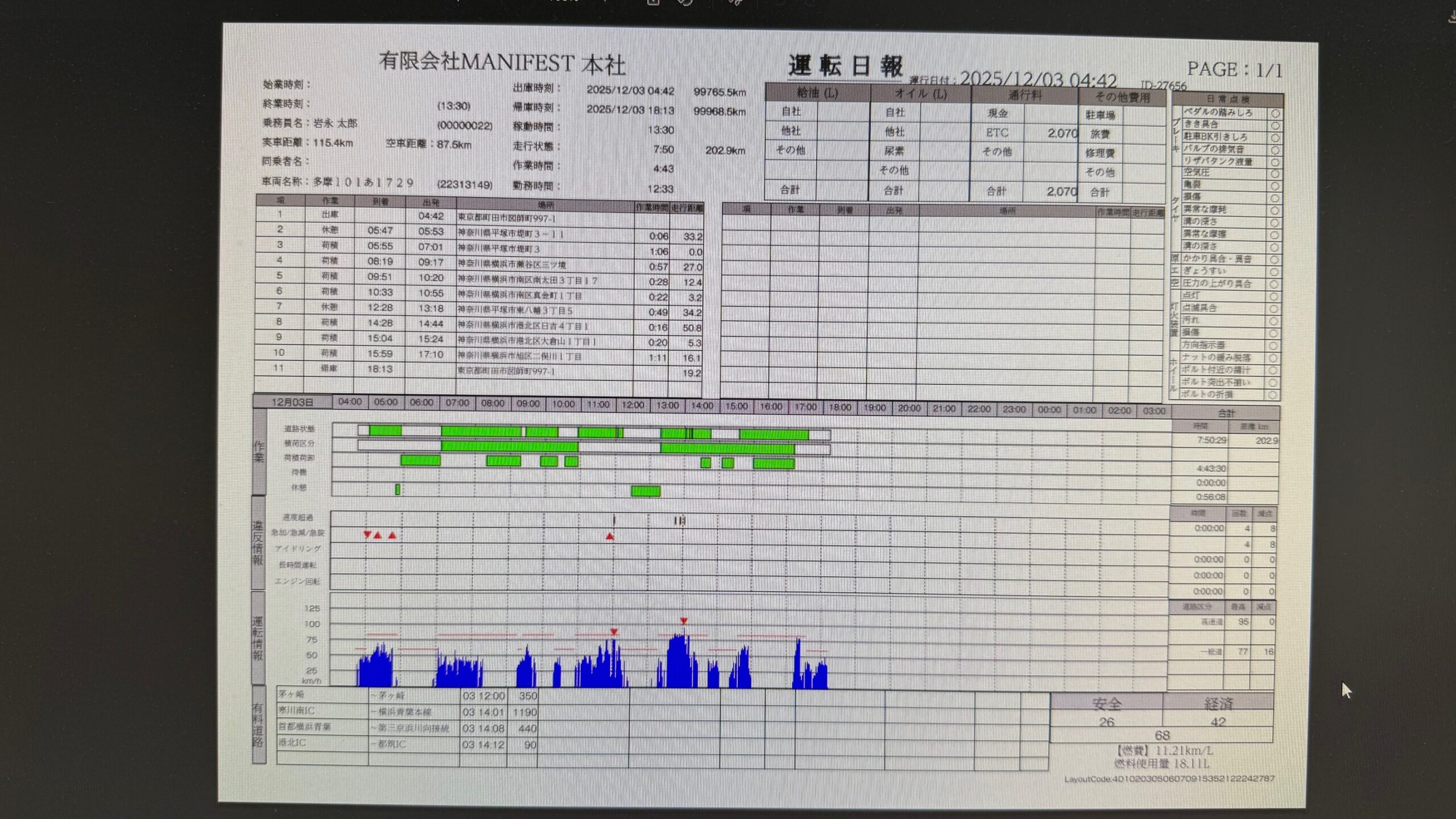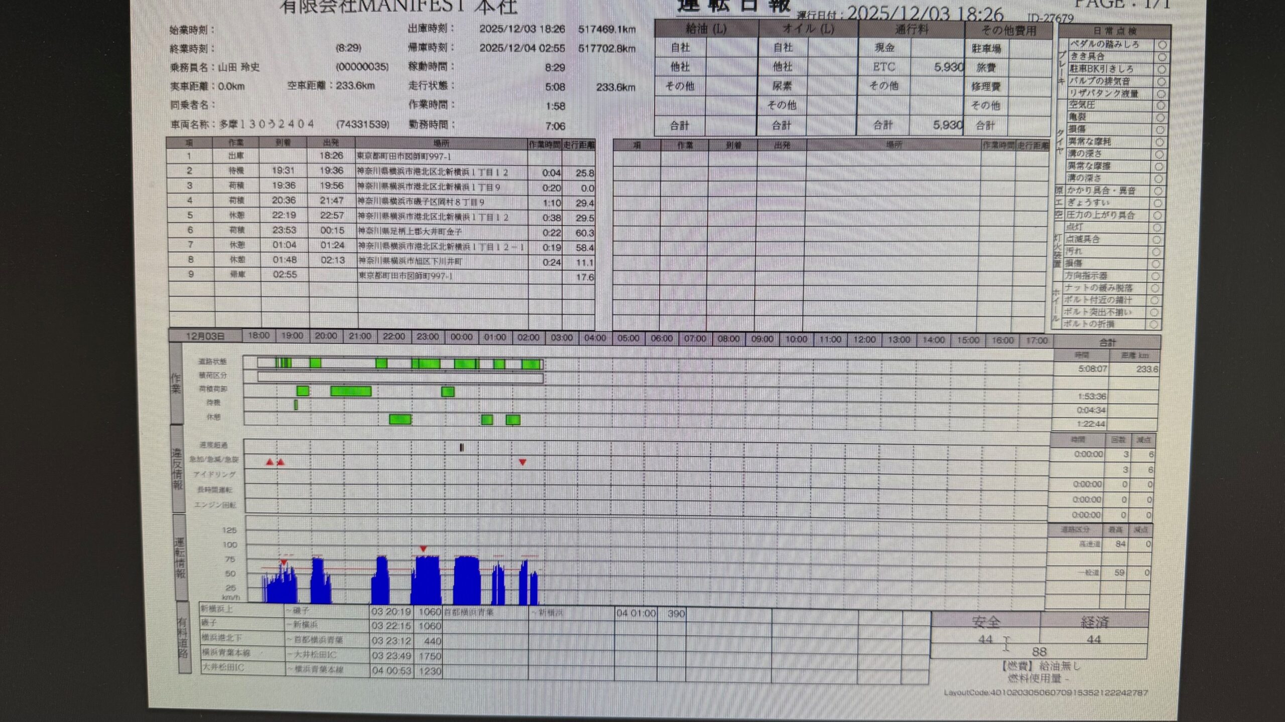 デジタコの日報の点数が90点以下でしたm(_ _)m