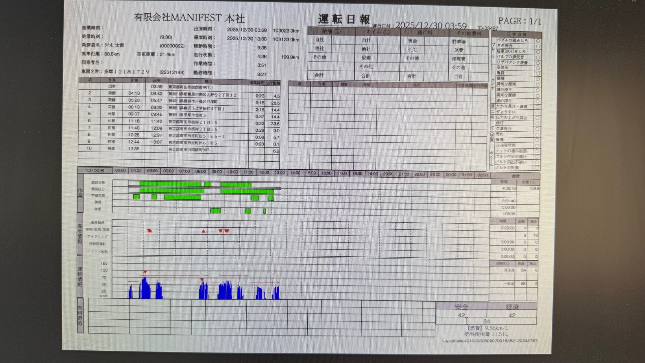 デジタコの日報の点数が90点以下でしたm(_ _)m