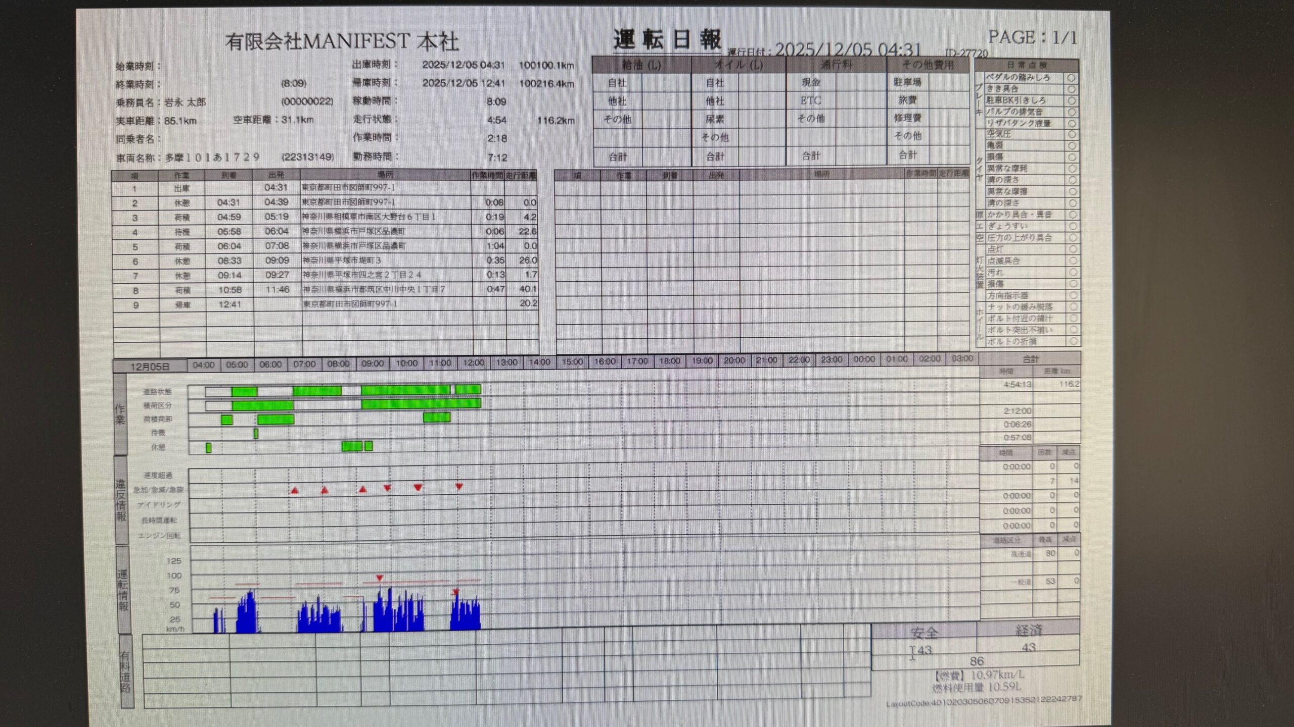 デジタコの日報の点数が90点以下でしたm(_ _)m