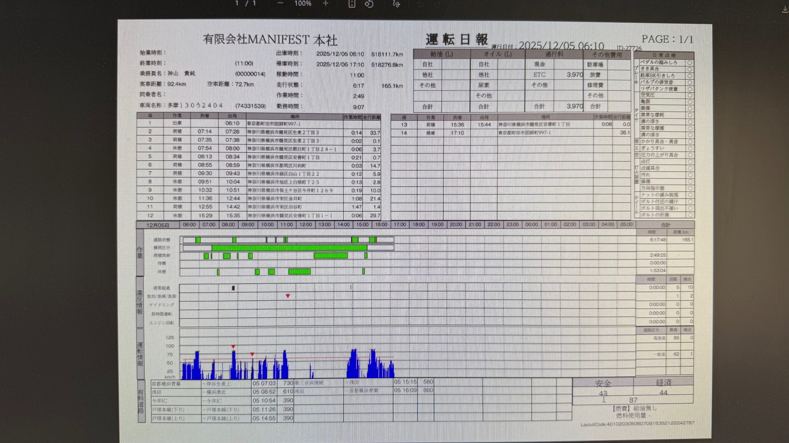 ※報告書には記入日とは別にデジタコの日付もお願いいたします。
