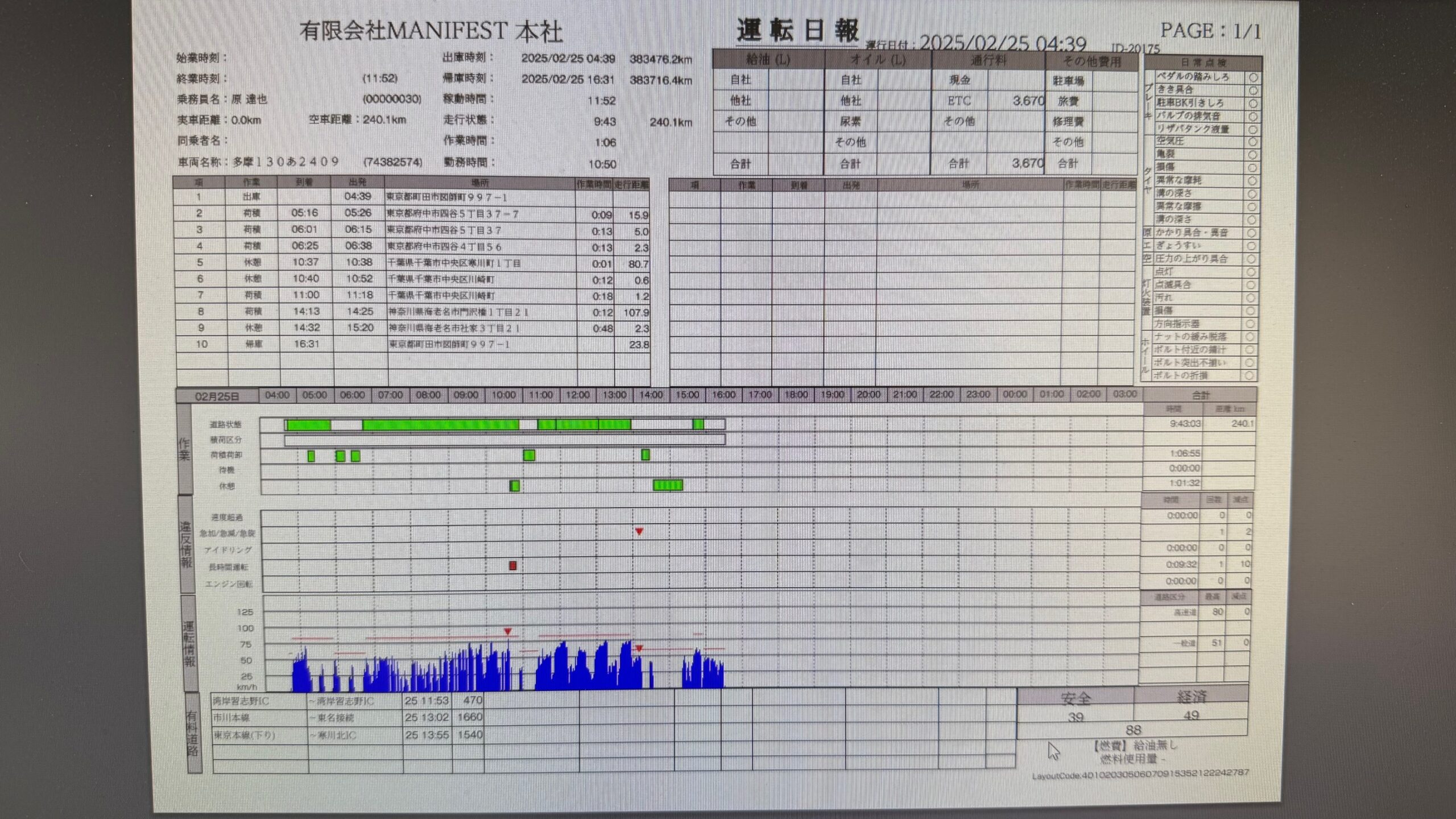 デジタコの日報の点数が90点以下でしたm(_ _)m