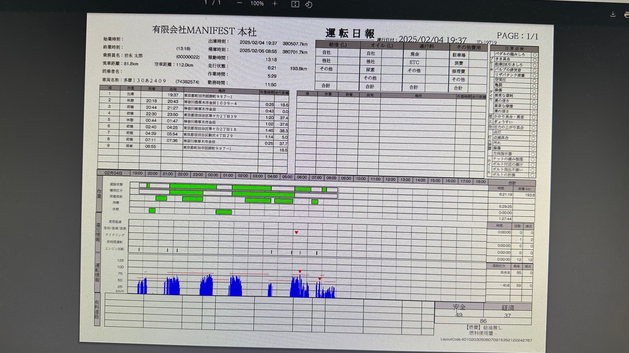 デジタコの日報の点数が90点以下でしたm(_ _)m