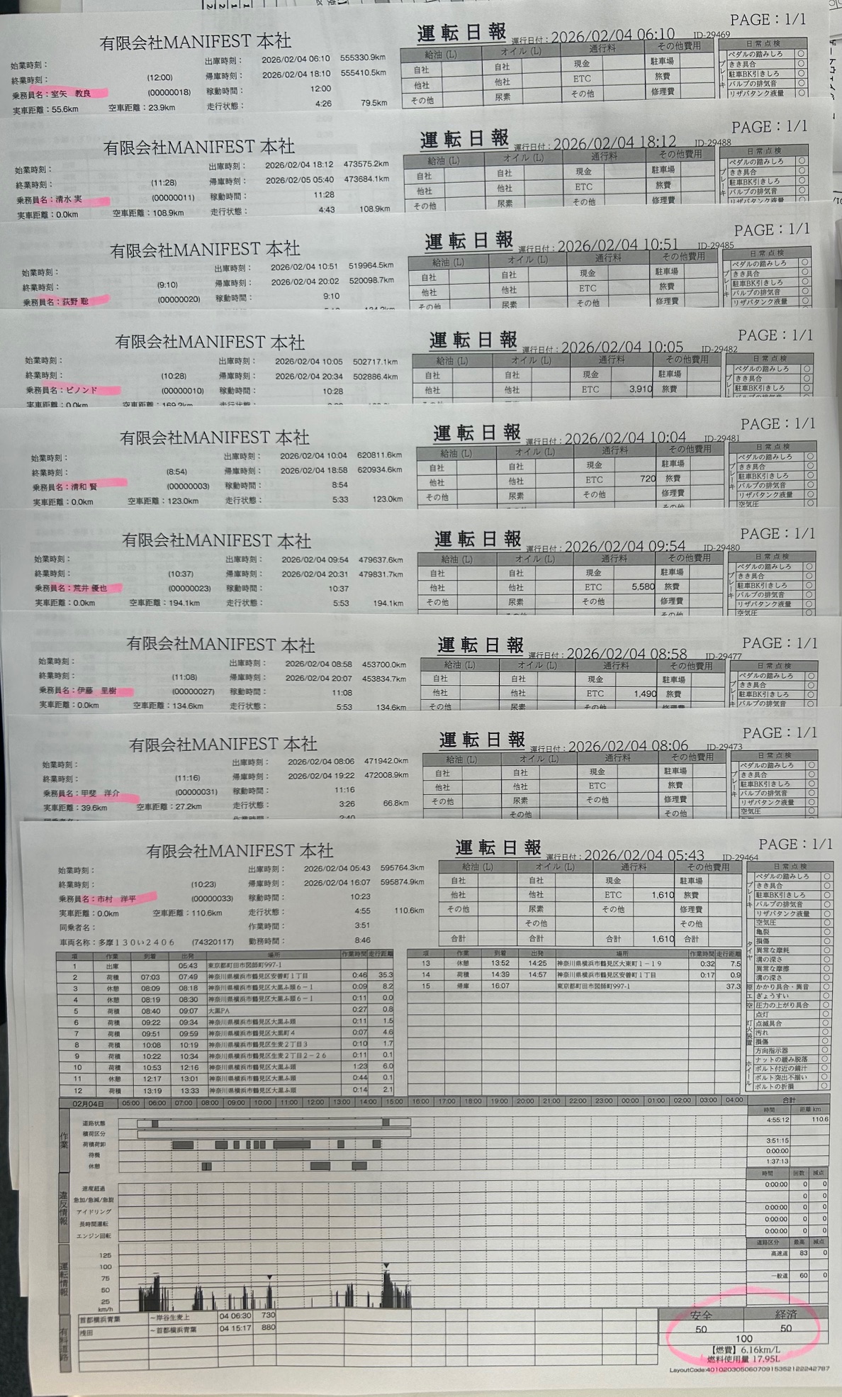 2/4分 100点満点者 9名 2026年2月5日 デジタコ(日報)お疲れ様です。9名の方が100点満点でした。いつも安全運転ありがとうございます。引き続きよろしくお願いいたします。こちらから「閲覧した」を登録してください。選択してください清和荒木宮前田ビノンド清水神山嶋村平石室矢荻野岩永荒井阿部(健)引田伊藤(諒)原甲斐碩市村山田(玲)城所阿部(長)山田(圭)庄司紀井伊藤(里)春原清和2/5荒木 宮 前田 ビノンド 清水2/5神山2/5嶋村 平石 室矢 荻野 岩永 荒井2/5阿部(健) 引田 伊藤(諒) 原 甲斐 碩 市村 山田(玲) 城所 阿部(長) 山田(圭) 庄司 紀井 伊藤(里) 春原 すべての投稿を見るトップページへ戻る
