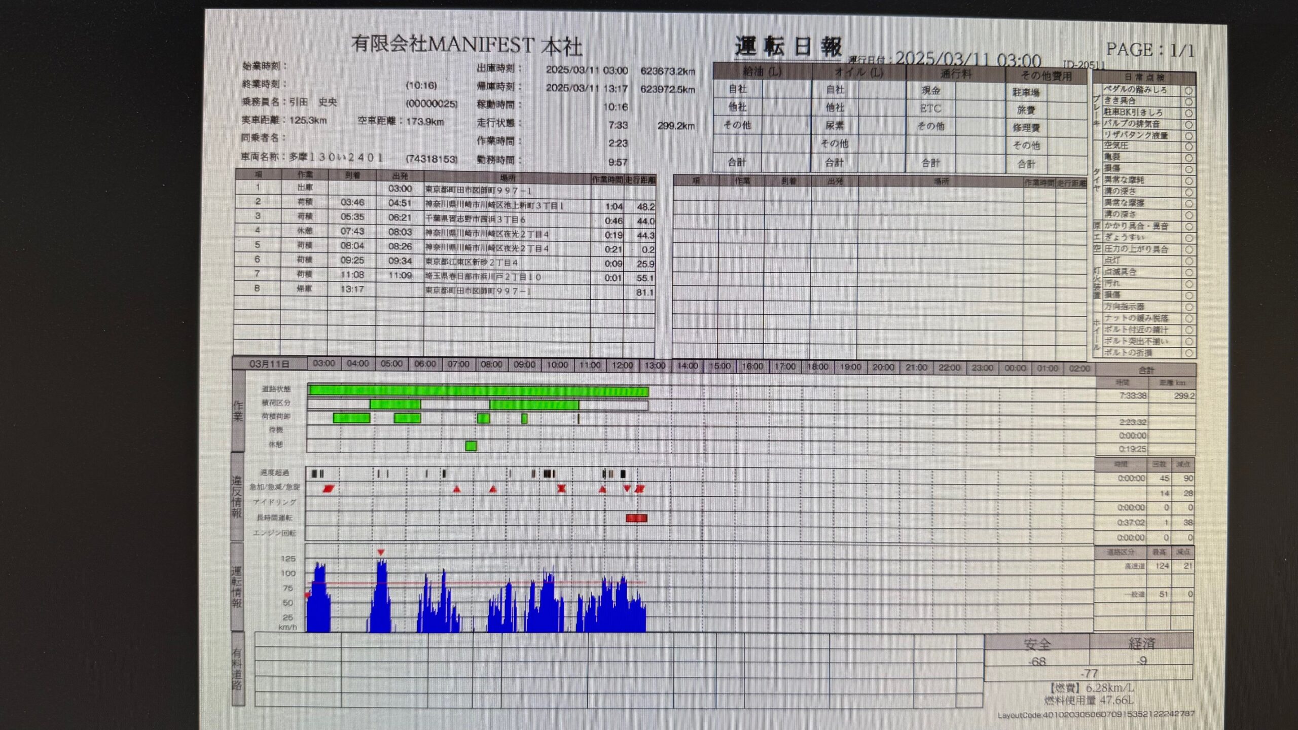 速度超過、急加速、急減速、長時間運転などに気を付け90点以上取れる安全運転で無事、帰って来れるようお願いいたしますm(_ _)m