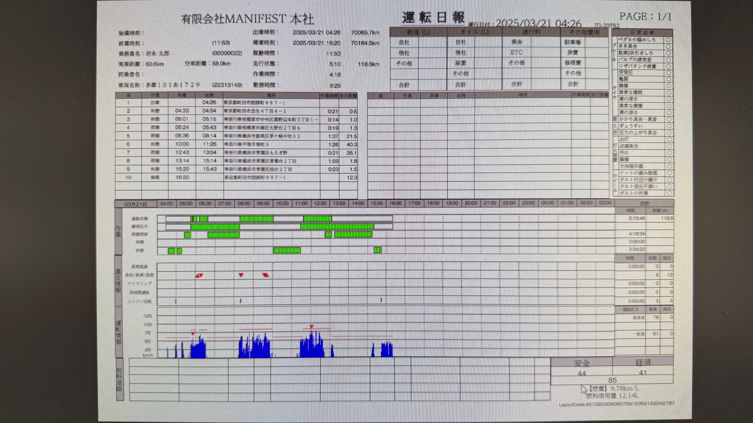 速度超過、急加速、急減速、長時間運転などに気を付け90点以上取れる安全運転で無事、帰って来れるようお願いいたしますm(_ _)m