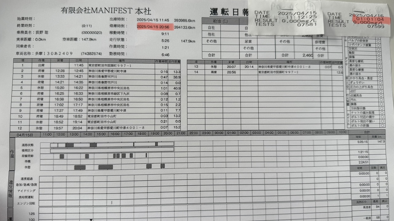 4/15分 荻野さん 2025年4月16日 デジタコ(日報)お疲れ様です!帰庫時間とアルコールチェック時間の差が空きすぎています。理由がある場合報告お願いいたしますm(_ _)mこちらから「閲覧した」を登録してください。選択してください清和荒木宮前田ビノンド清水神山嶋村平石室矢荻野岩永荒井阿部(健)引田伊藤(諒)原甲斐碩市村山田(玲)城所阿部(長)山田(圭)庄司紀井伊藤(里)春原清和4/16荒木4/20宮 前田4/17ビノンド4/16清水4/16神山 嶋村4/16平石 室矢 荻野4/16岩永 荒井4/16阿部(健)4/16引田4/16伊藤(諒)4/16原4/16甲斐4/17碩4/22市村4/17山田(玲)4/16城所 阿部(長) 山田(圭) 庄司4/16紀井4/16伊藤(里) 春原 すべての投稿を見るトップページへ戻る