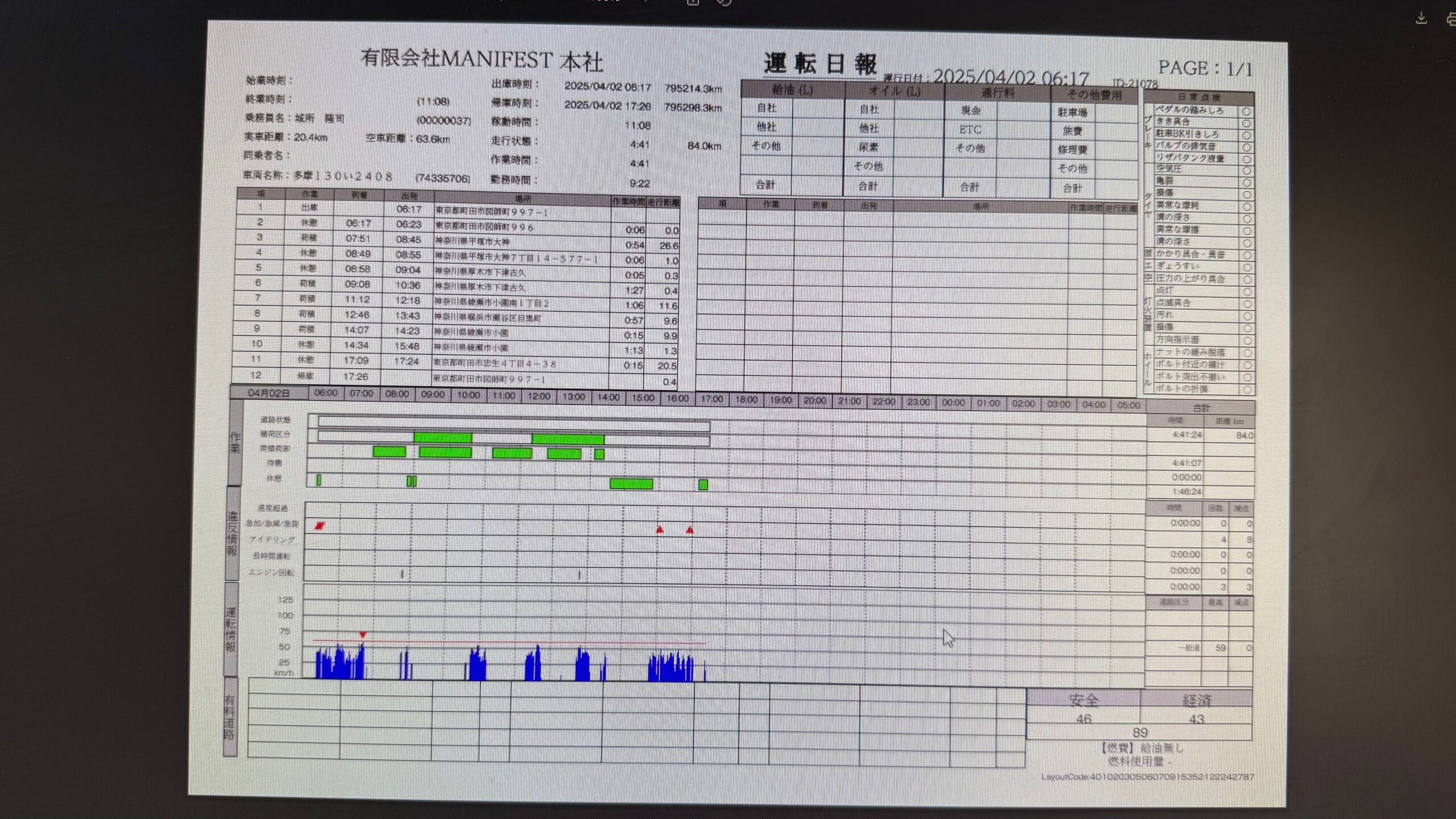 デジタコの日報の点数が90点以下でしたm(_ _)m