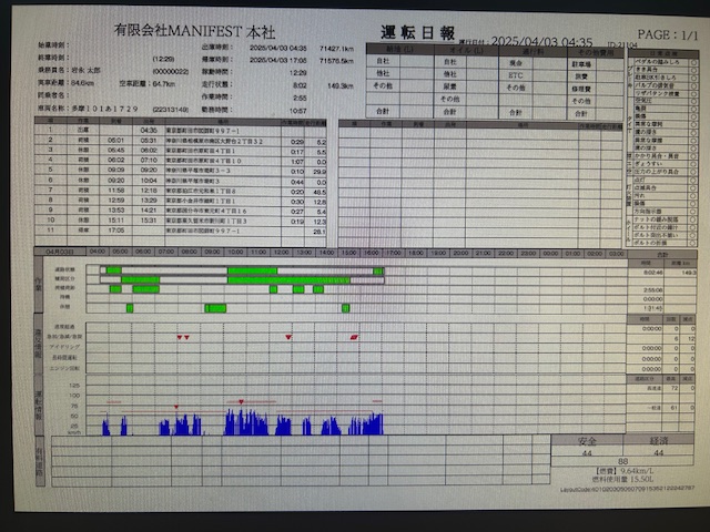 速度超過、急加速、急減速、長時間運転などに気を付け90点以上取れる安全運転で無事、帰って来れるようお願いいたします!
