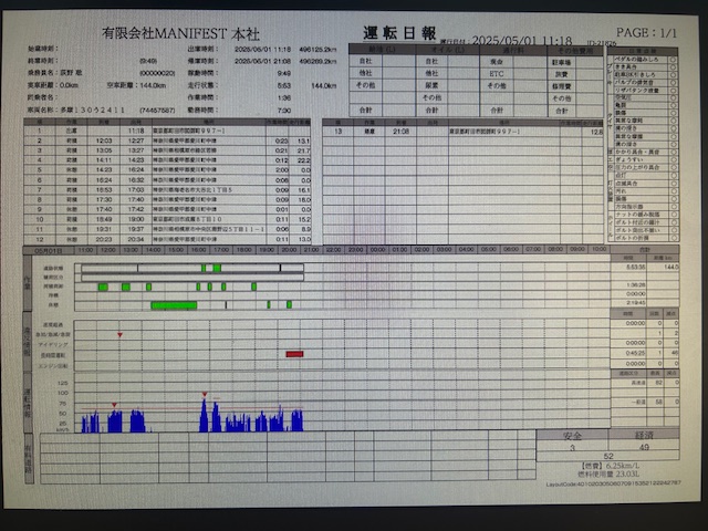 ※報告書にデジタコと同じ日付の記入もお願いいたします。