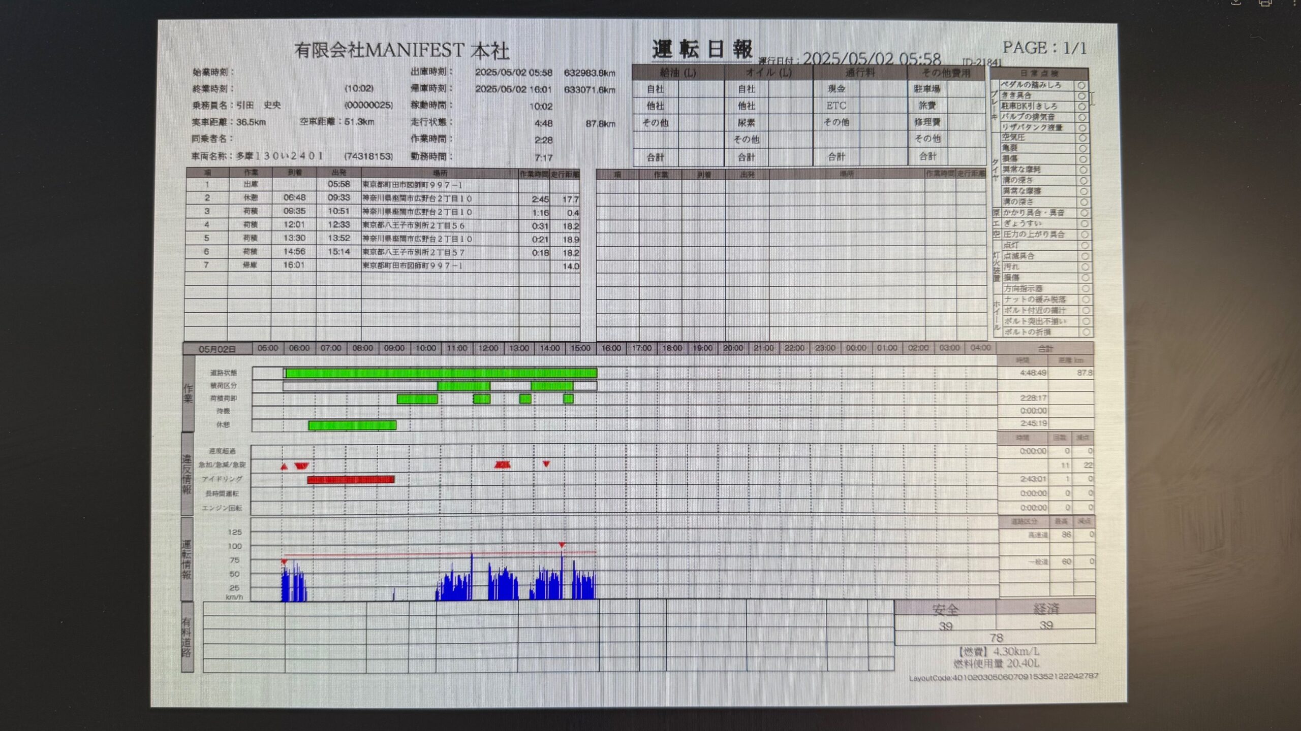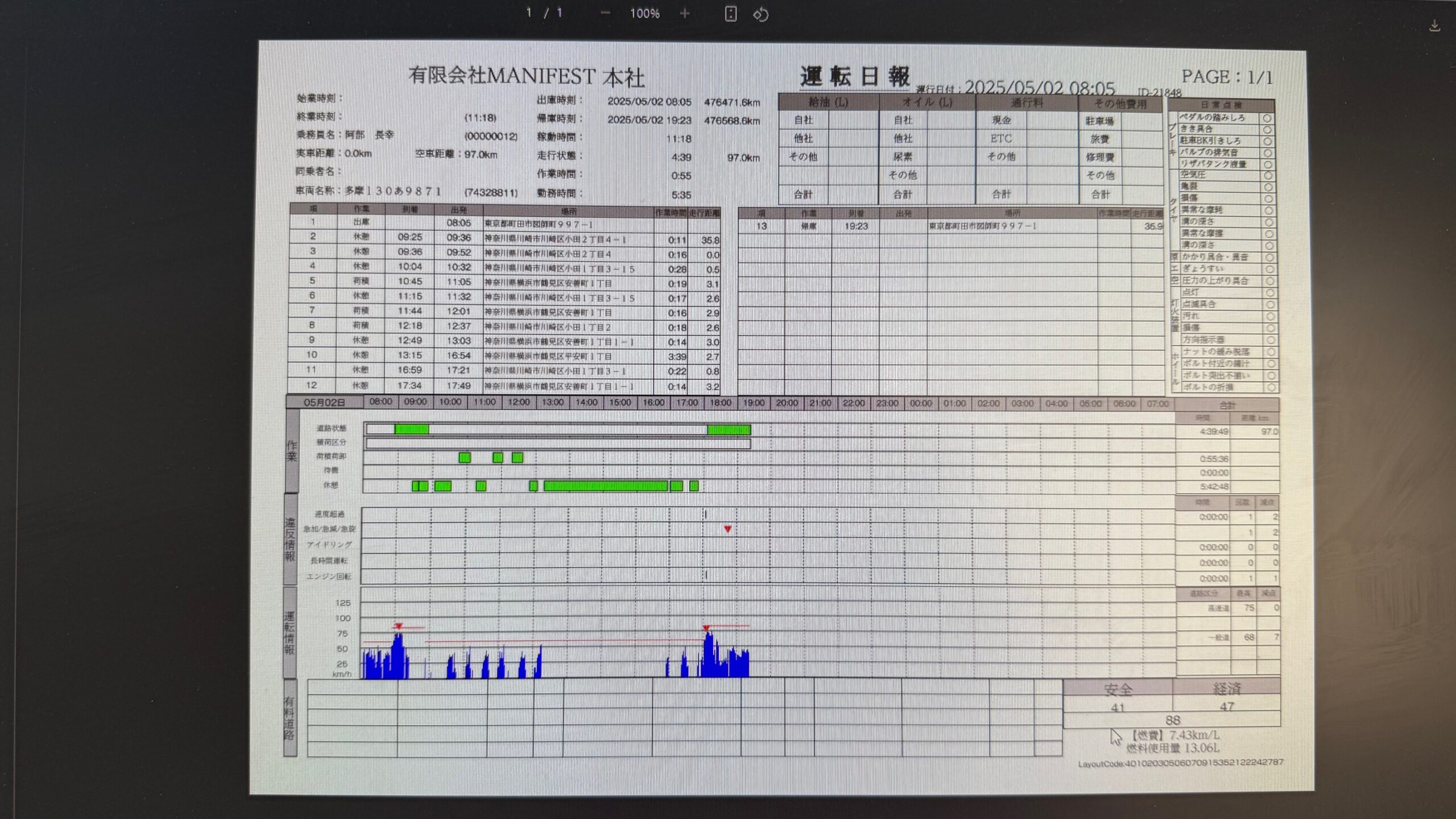 ※報告書にデジタコと同じ日付の記入もお願いいたします。