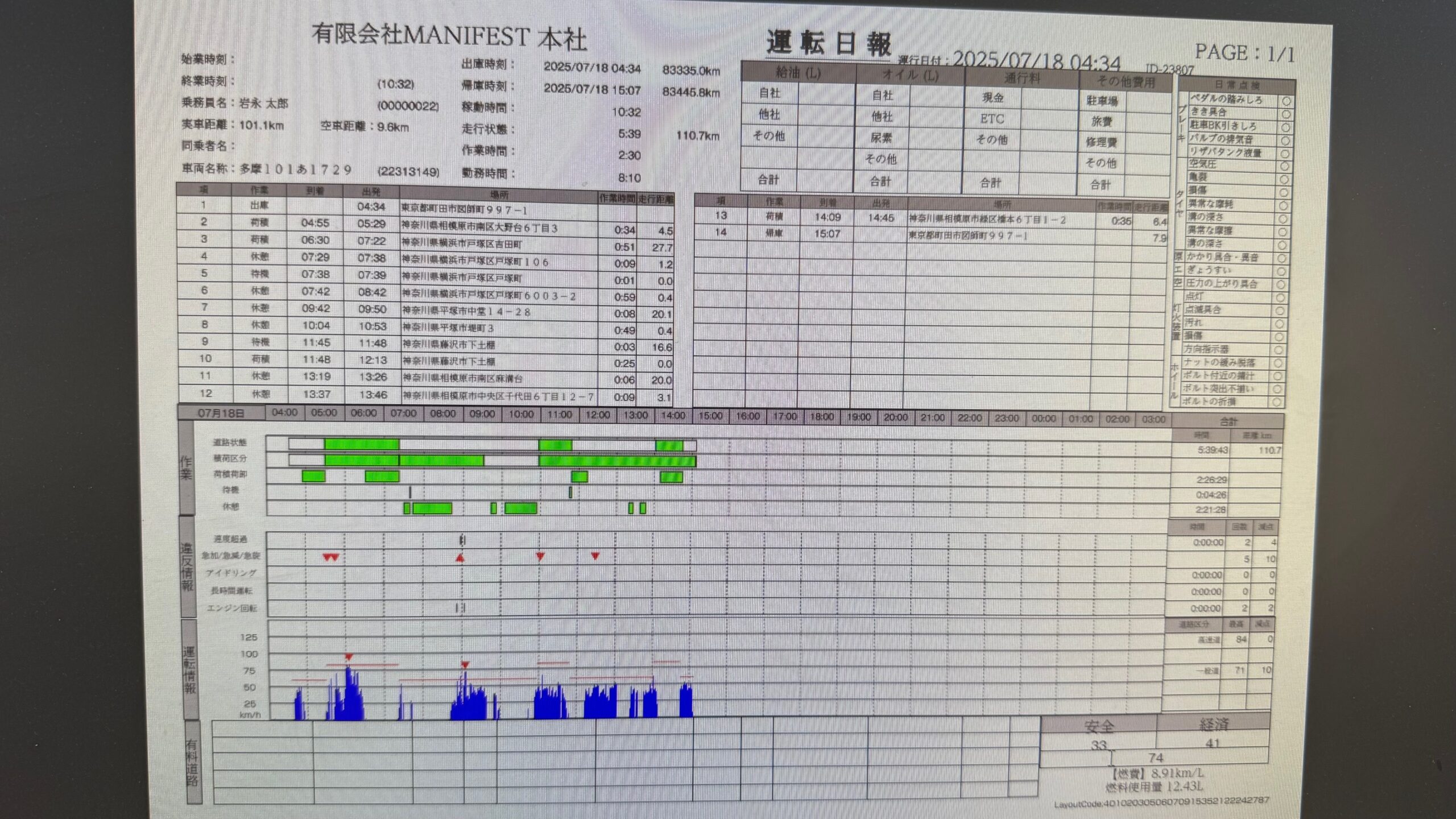 速度超過、急加速、急減速、長時間運転などに気を付け90点以上取れる安全運転で無事、帰って来れるようお願いいたしますm(_ _)m