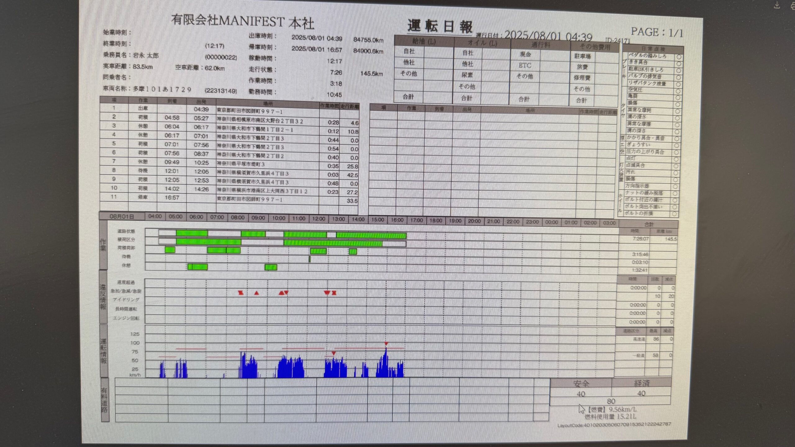 デジタコの日報の点数が90点以下でしたm(_ _)m