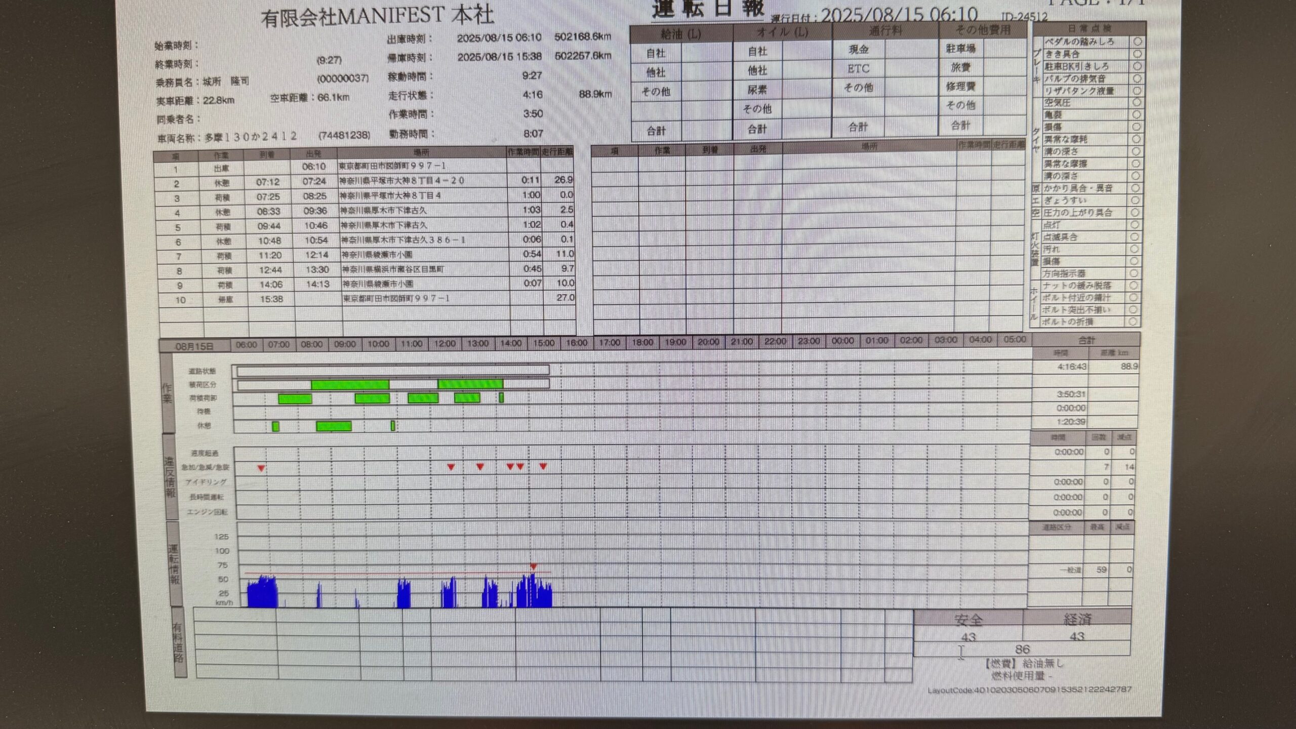 ※報告書に記入日とは別にデジタコの日付もお願いいたします。
