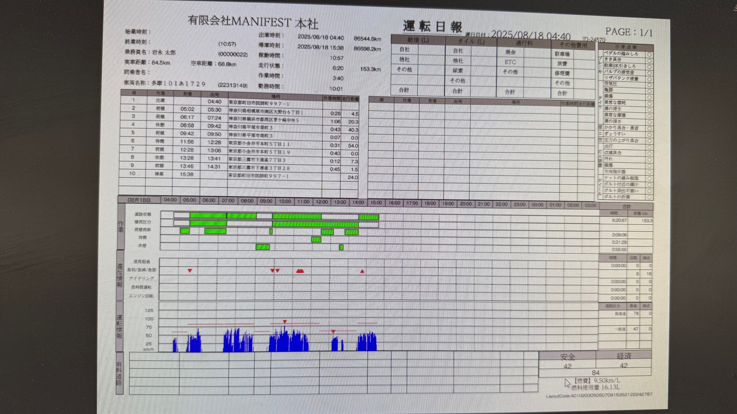 デジタコの日報の点数が90点以下でしたm(_ _)m