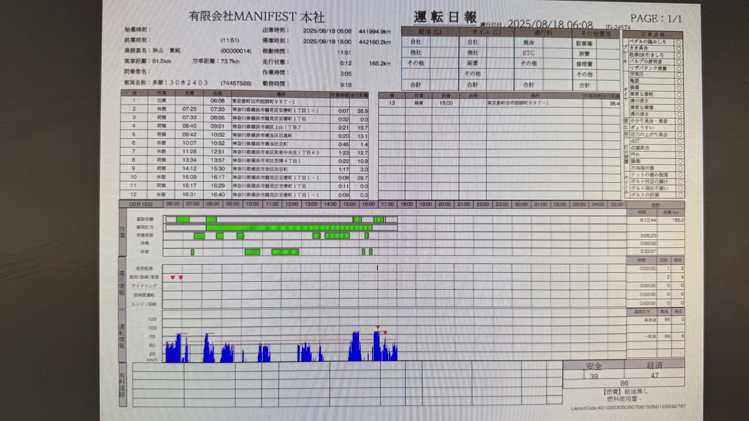 速度超過、急加速、急減速、長時間運転などに気を付け90点以上取れる安全運転で無事、帰って来れるようお願いいたしますm(_ _)m