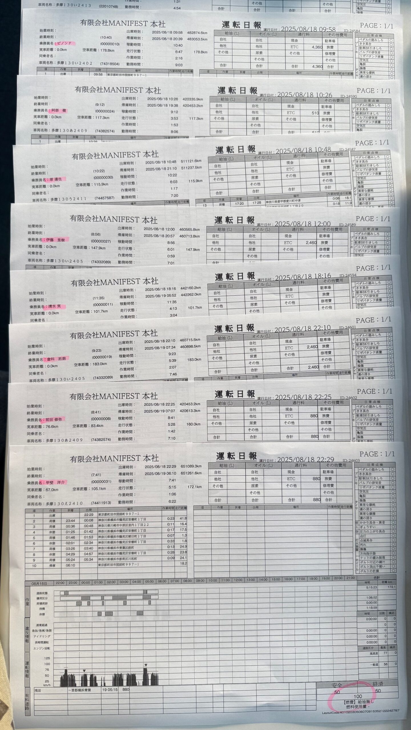 8/18分 100点満点者 2025年8月19日 デジタコ(日報)お疲れ様です上記の9名が100点満点でした!いつも安全運転ありがとうございます。引き続きよろしくお願いいたします。こちらから「閲覧した」を登録してください。選択してください清和荒木宮前田ビノンド清水神山嶋村平石室矢荻野岩永荒井阿部(健)引田伊藤(諒)原甲斐碩市村山田(玲)城所阿部(長)山田(圭)庄司紀井伊藤(里)春原清和 荒木8/24宮 前田8/20ビノンド 清水8/19神山 嶋村 平石 室矢 荻野8/19岩永 荒井8/19阿部(健) 引田8/19伊藤(諒) 原8/19甲斐8/20碩8/20市村8/20山田(玲)8/19城所8/20阿部(長) 山田(圭) 庄司8/22紀井 伊藤(里)8/19春原 すべての投稿を見るトップページへ戻る