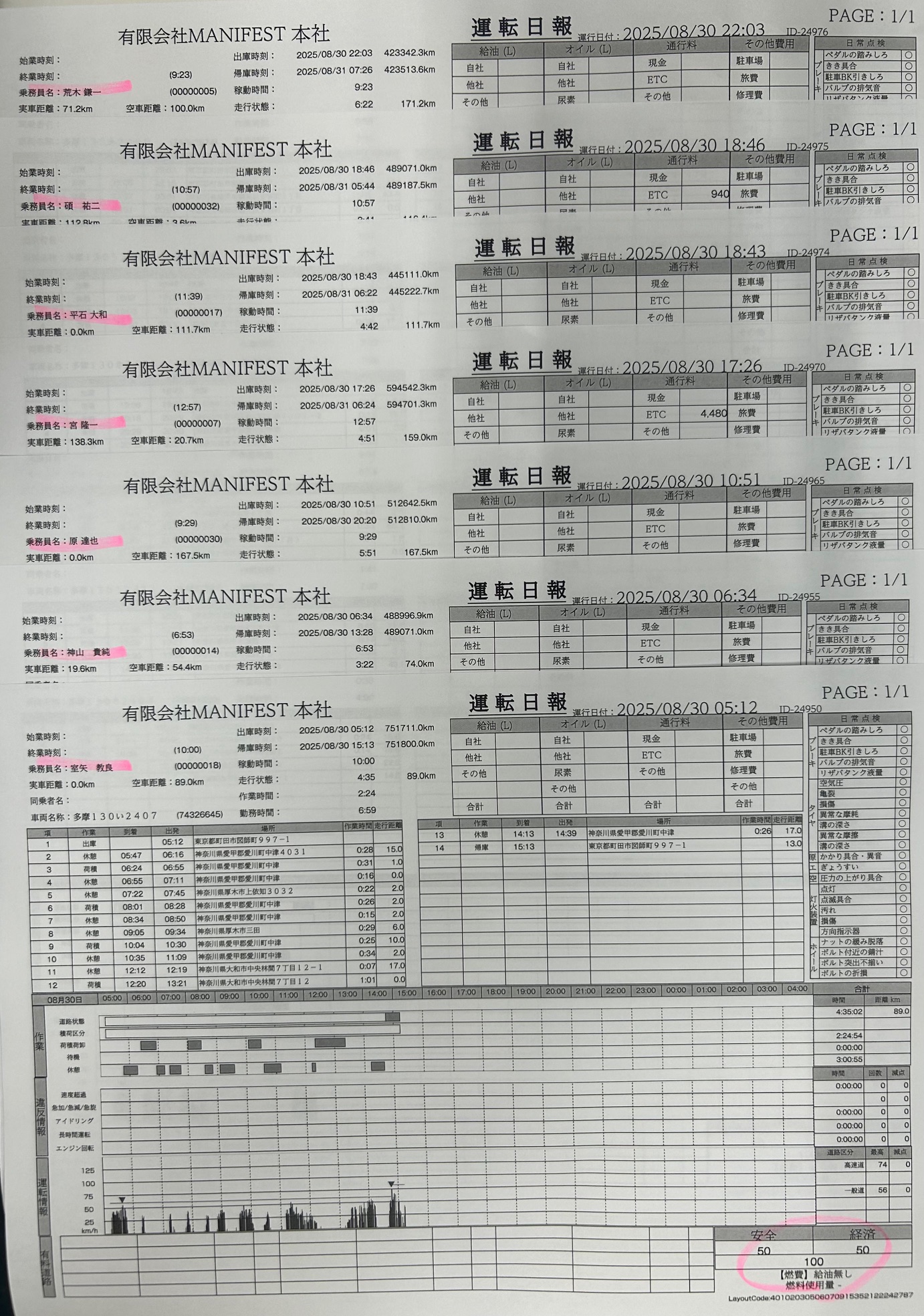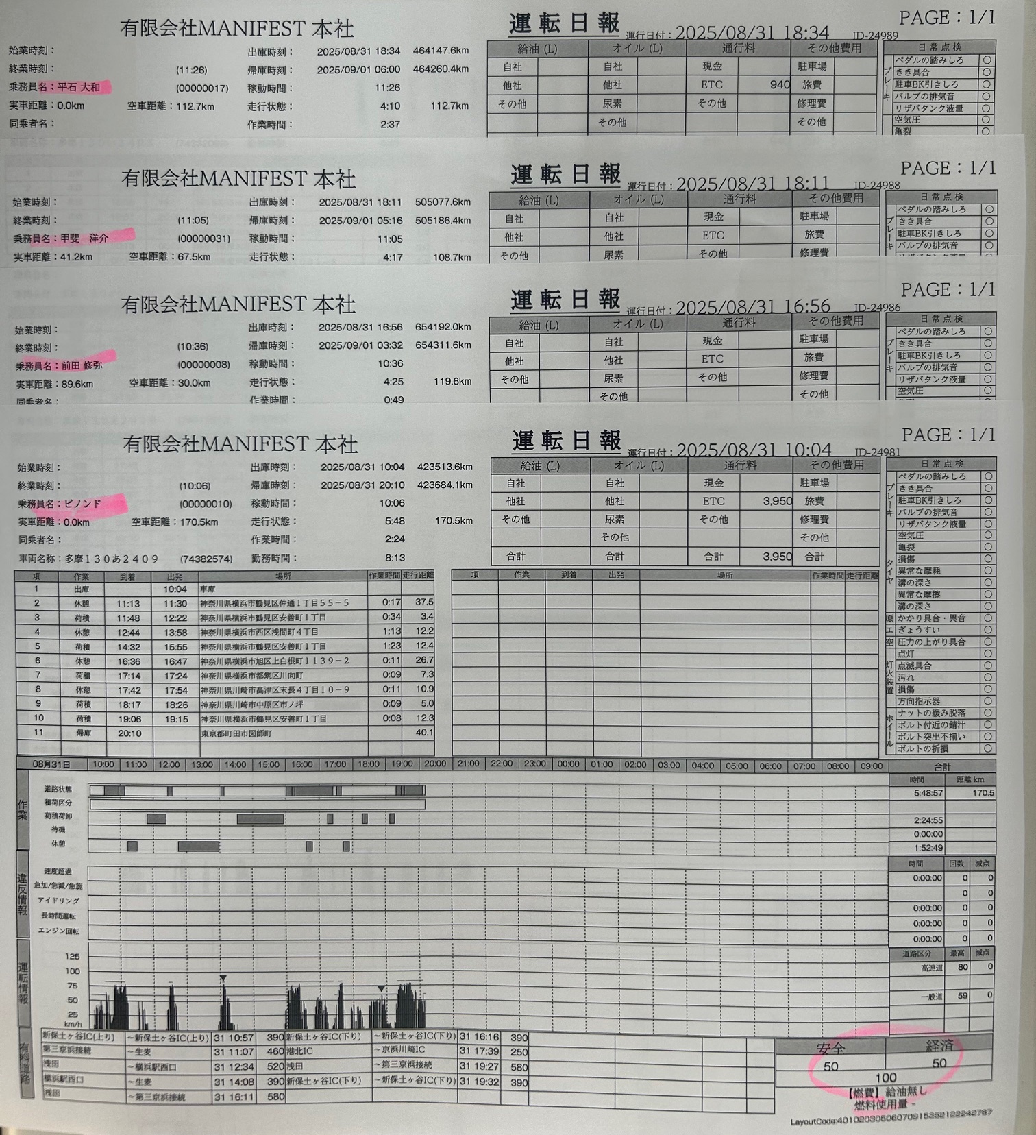 8/30分 7名 8/31分 4名 100点満点者 2025年9月2日 デジタコ(日報)お疲れ様です。上記の方々が100点満点でした。いつも安全運転ありがとうございます。引き続きよろしくお願いいたします。こちらから「閲覧した」を登録してください。選択してください清和荒木宮前田ビノンド清水神山嶋村平石室矢荻野岩永荒井阿部(健)引田伊藤(諒)原甲斐碩市村山田(玲)城所阿部(長)山田(圭)庄司紀井伊藤(里)春原清和 荒木 宮9/3前田9/3ビノンド 清水 神山 嶋村 平石 室矢 荻野 岩永 荒井9/2阿部(健) 引田9/2伊藤(諒)9/2原9/2甲斐9/2碩 市村 山田(玲)9/3城所 阿部(長) 山田(圭) 庄司9/2紀井 伊藤(里) 春原 すべての投稿を見るトップページへ戻る