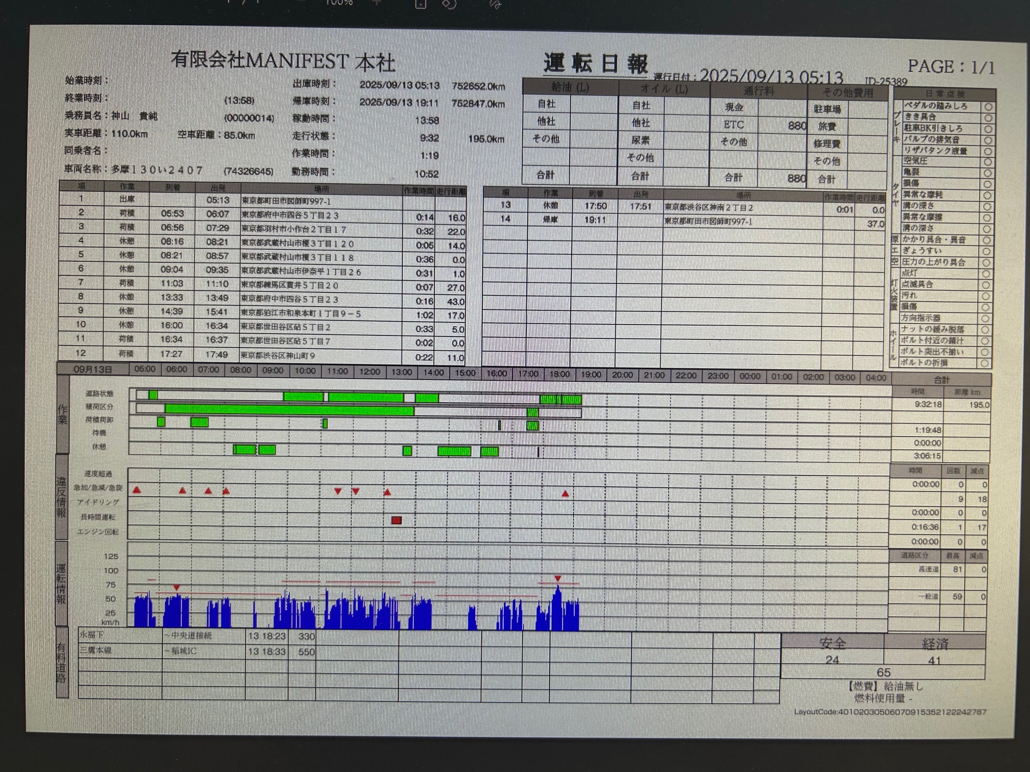 速度超過、急加速、急減速、長時間運転などに気を付け90点以上取れる安全運転で無事、帰って来れるようお願いいたします!
