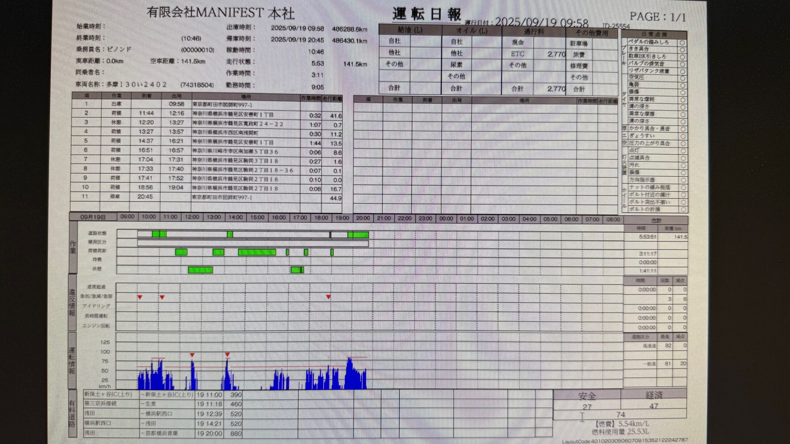 デジタコの日報の点数が90点以下でしたm(_ _)m