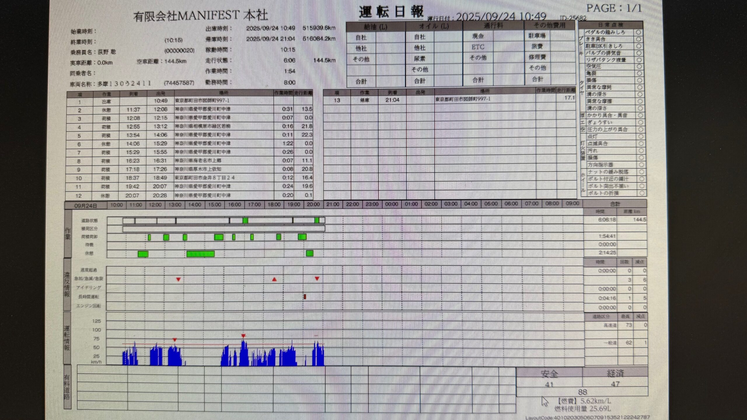速度超過、急加速、急減速、長時間運転などに気を付け90点以上取れる安全運転で無事、帰って来れるようお願いいたしますm(_ _)m