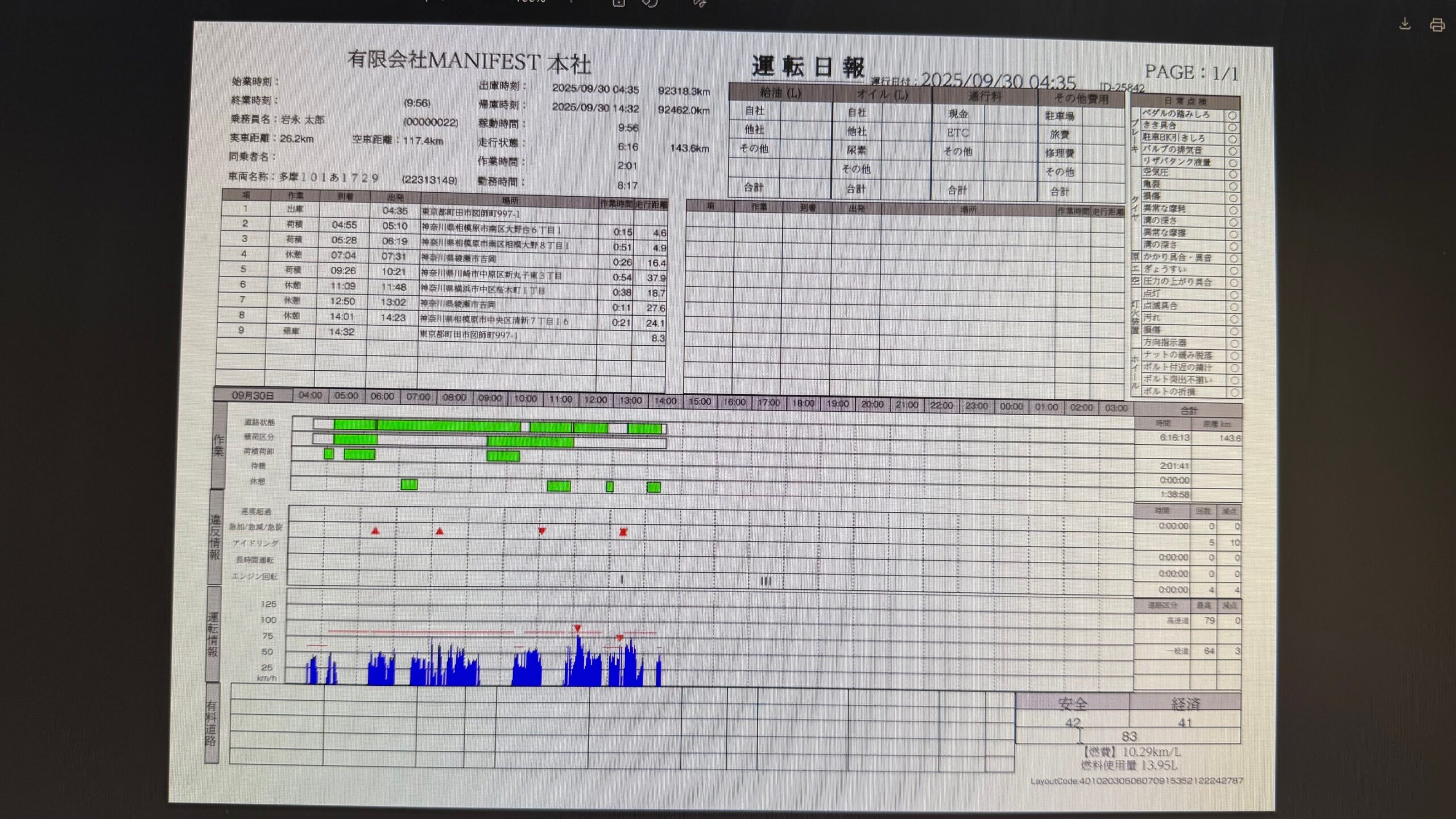 ※報告書には記入日とは別にデジタコの日付もお願いいたします。