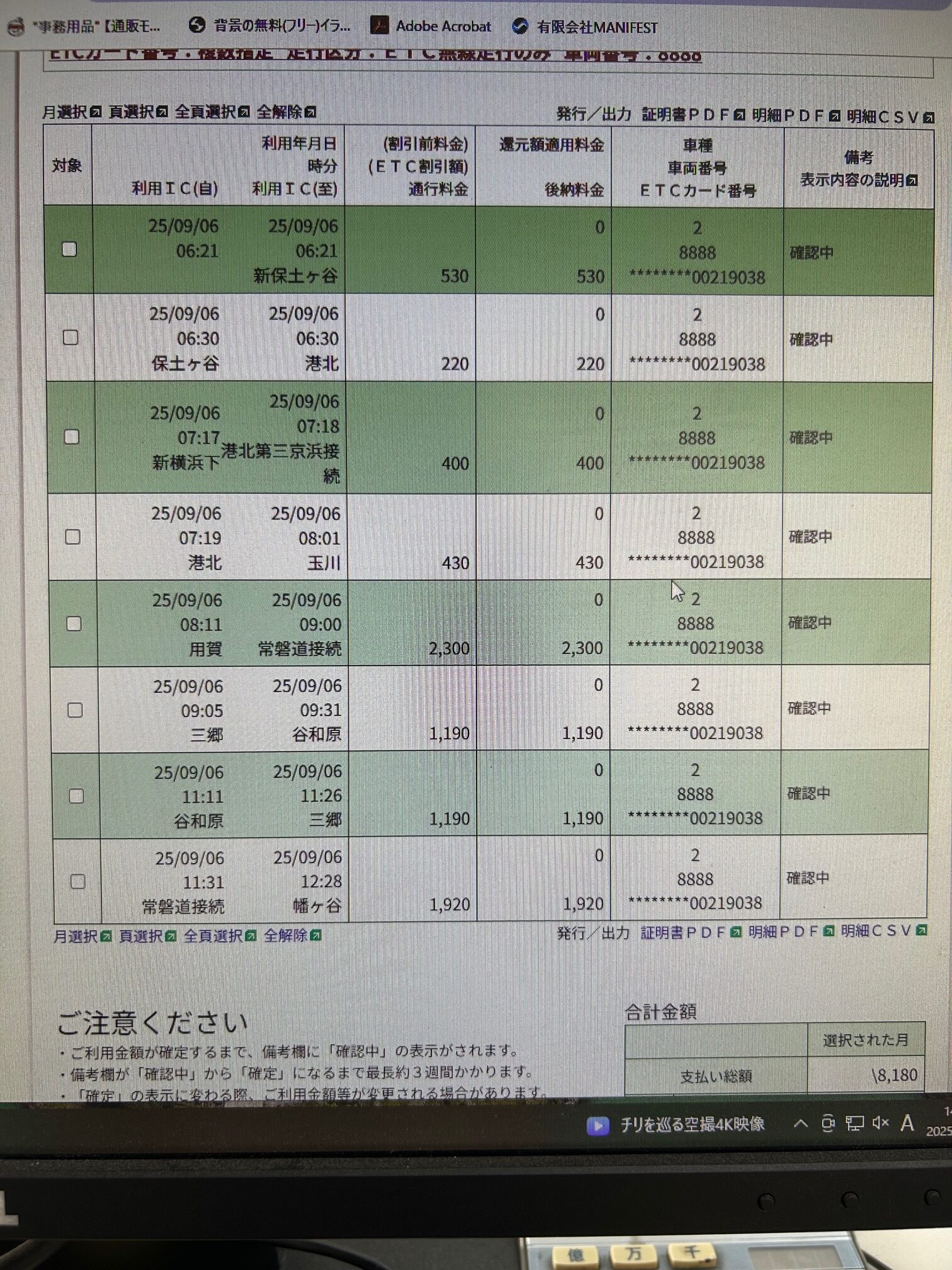 9/6分 市村さん アートバンライン高速代の件 2025年9月8日 その他荷主お疲れ様です。1便 アマゾン2便 アサヒ飲料 茨城県守谷市こちら両便とも高速ありとなっておりましたが範囲をご教授ください。再度業務報告へ入力いただけますと幸いです。よろしくお願いいたします。こちらから「閲覧した」を登録してください。選択してください清和荒木宮前田ビノンド清水神山嶋村平石室矢荻野岩永荒井阿部(健)引田伊藤(諒)原甲斐碩市村山田(玲)城所阿部(長)山田(圭)庄司紀井伊藤(里)春原清和 荒木 宮 前田9/23ビノンド9/8清水9/8神山 嶋村 平石 室矢 荻野9/8岩永 荒井9/8阿部(健) 引田 伊藤(諒) 原9/8甲斐9/9碩9/9市村10/6山田(玲)9/9城所 阿部(長) 山田(圭) 庄司9/8紀井 伊藤(里)9/8春原 すべての投稿を見るトップページへ戻る